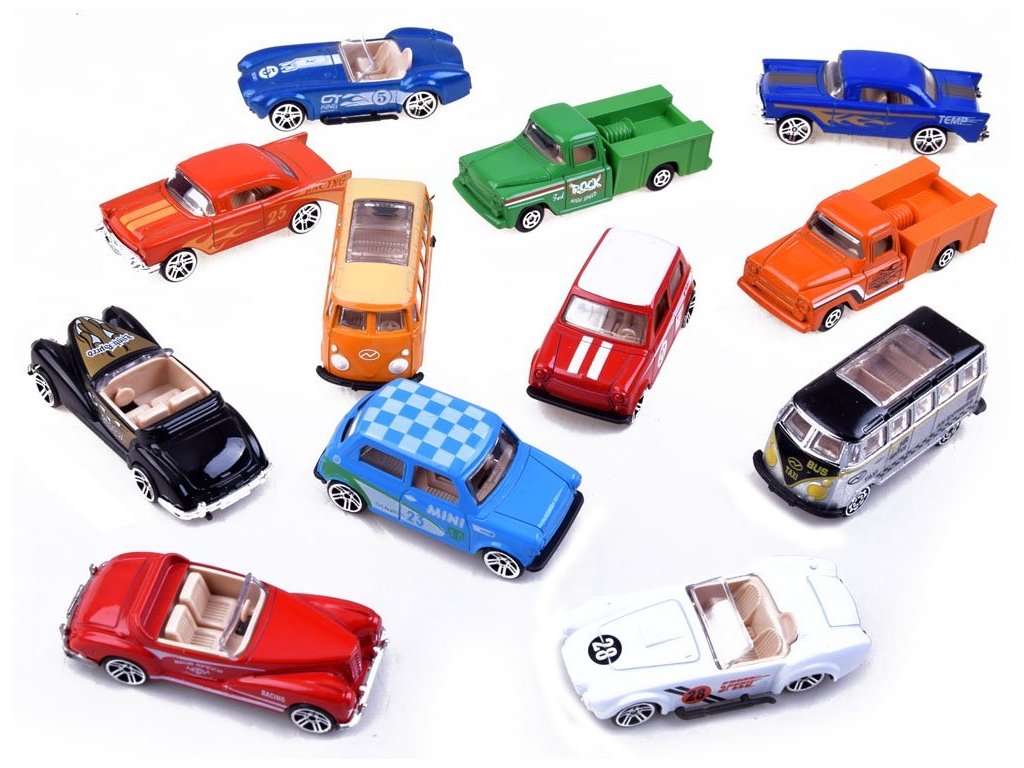 Kolekce retro autíček je určena pro malé i velké kluky. Sada se skládá z 12 kusů starobylých vozidel.