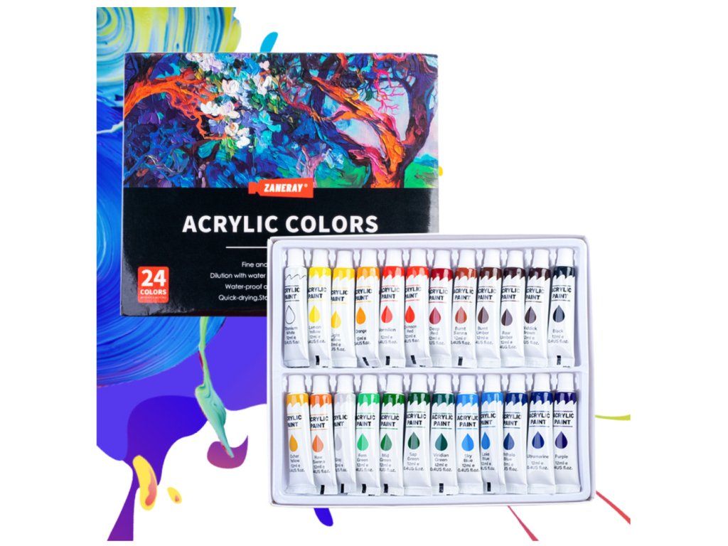 24 darabos akrilfesték készlet 12 ml-es tubusokban