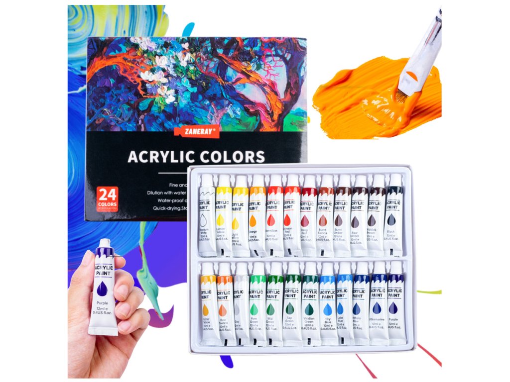 - A csomag tartalma: 24 szín tubusban