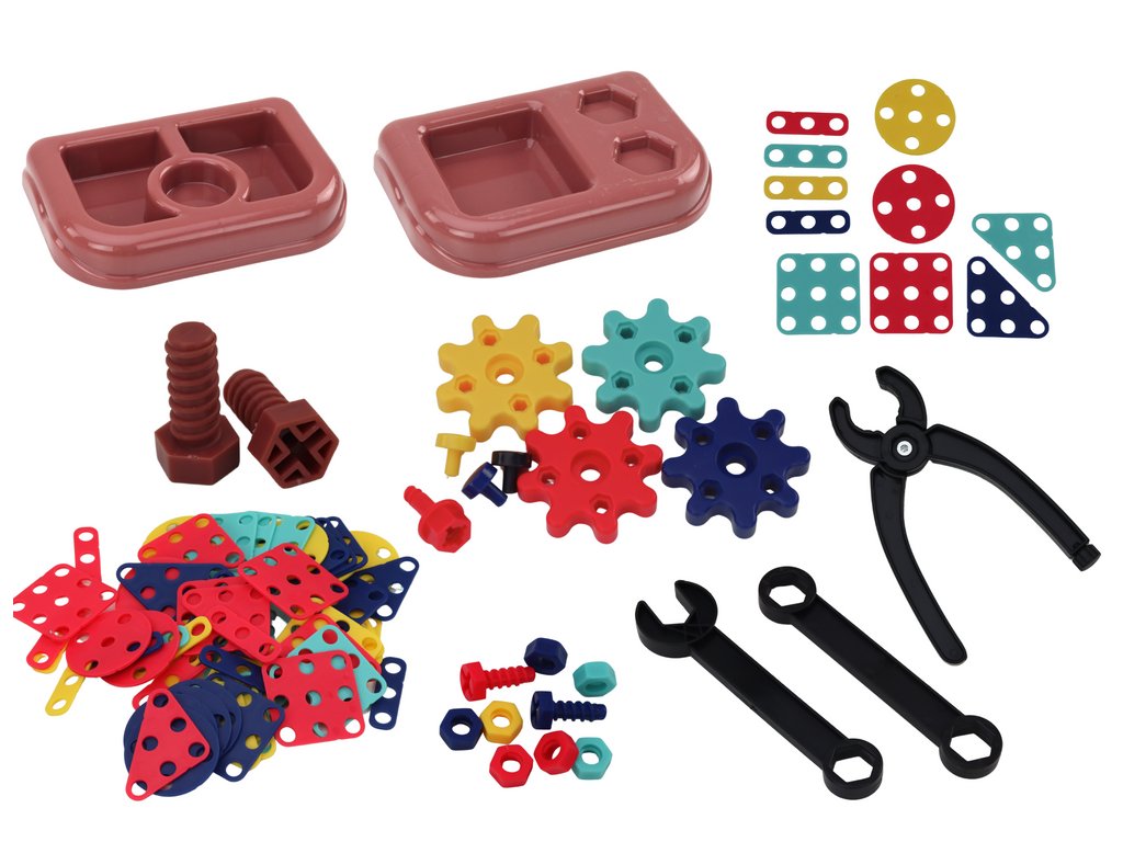A készlet tartalmaz egy ergonomikus fogantyús fúrót, amely ideális a kis kezekhez, valamint különféle csavarokat és szerszámokat, amelyek megkönnyítik az összeszerelést. Nekik köszönhetően a gyermek igazi konstruktőrnek érezheti magát, aki saját építményeit építi.