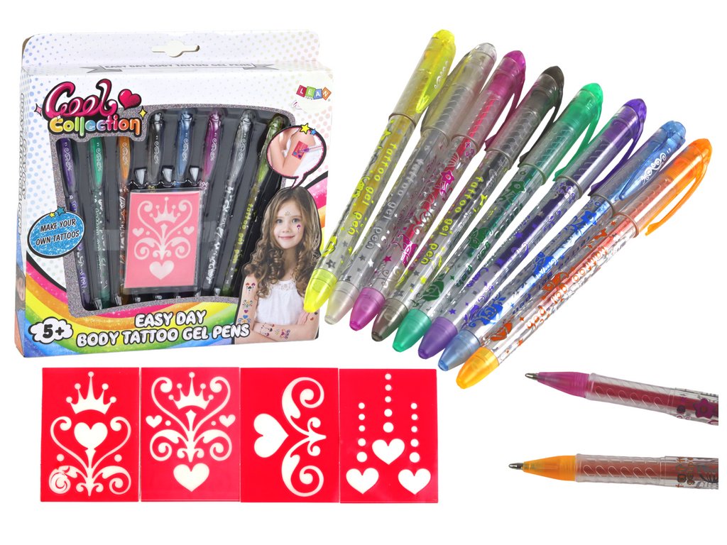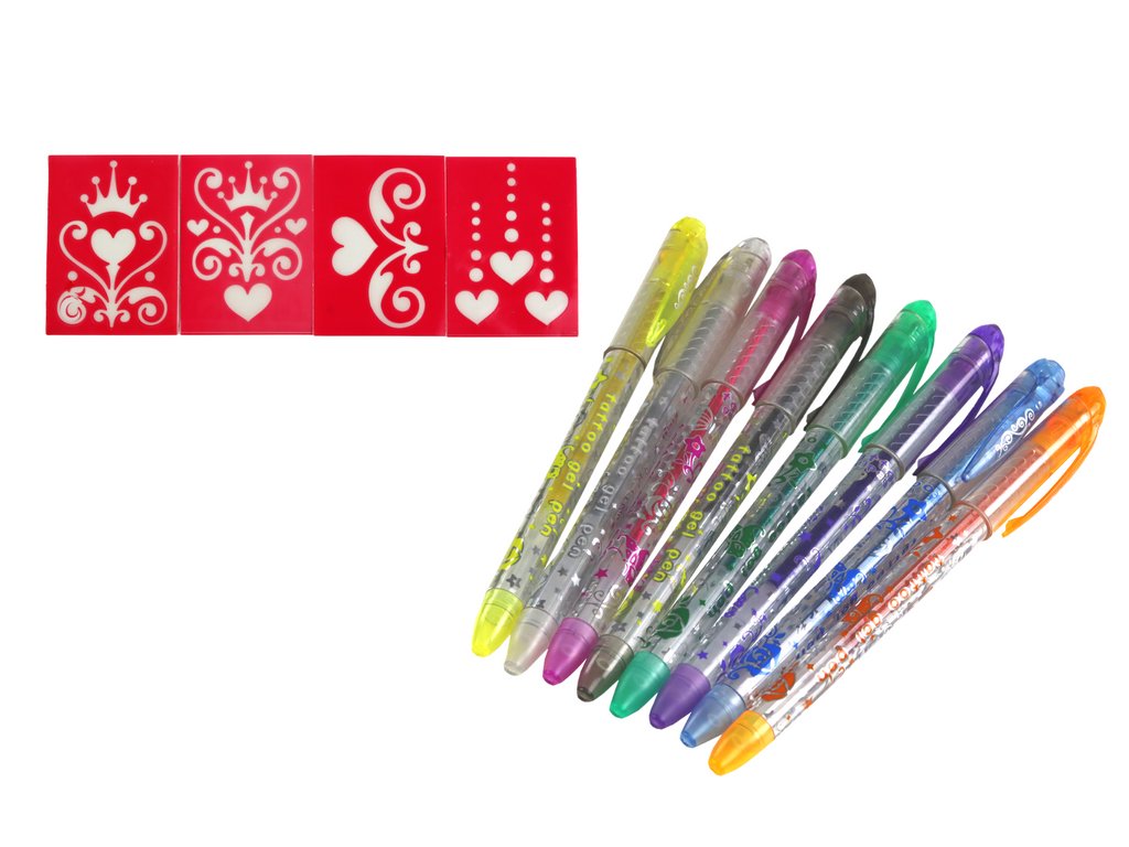 8 db csillogó tetoválás jelölő + 4 sablon készlet