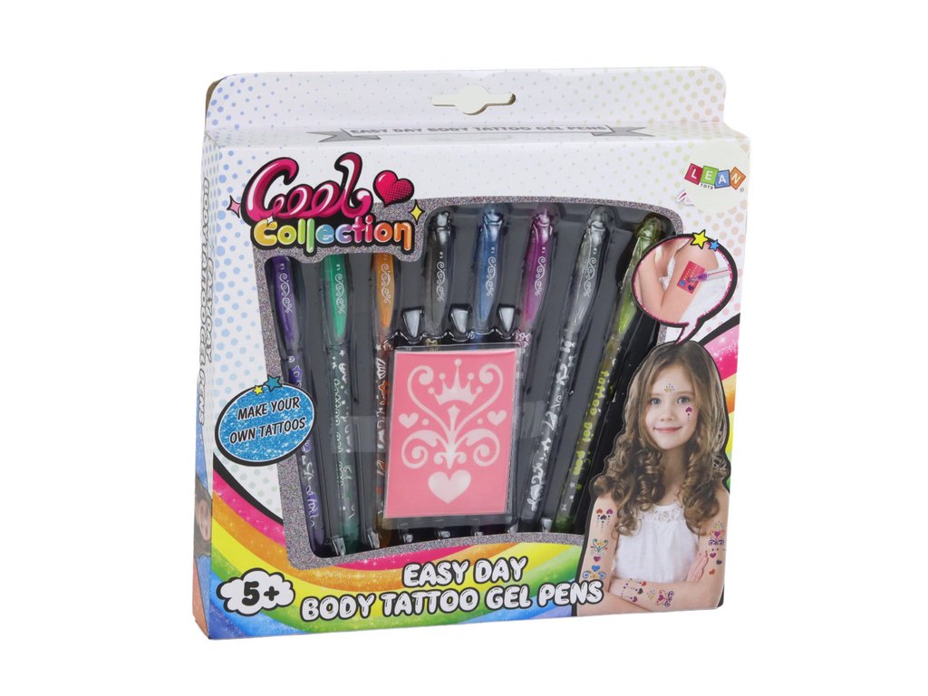 Ez a készlet nem csak szórakozás, hanem lehetőség a kézi készségek és a képzelet fejlesztésére is. A gyermek elkészítheti tetoválásait a bőrön és a papírlapokon is.