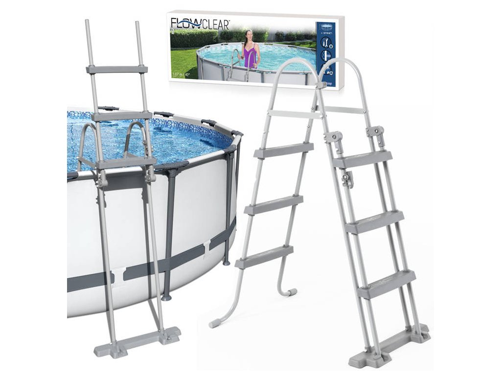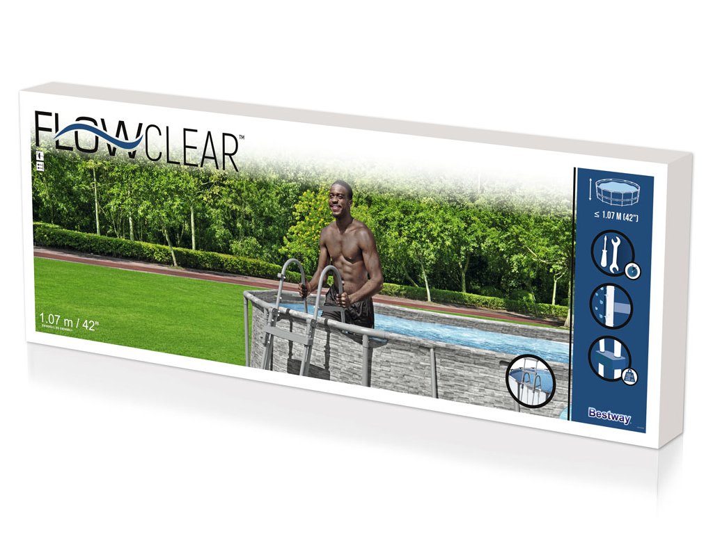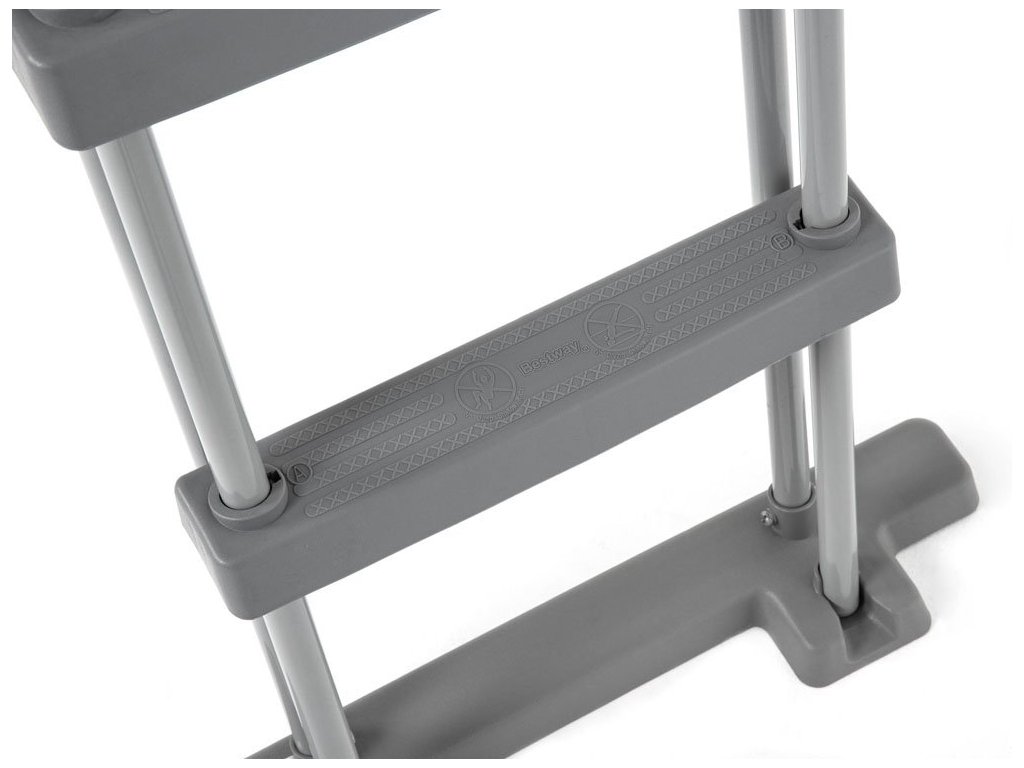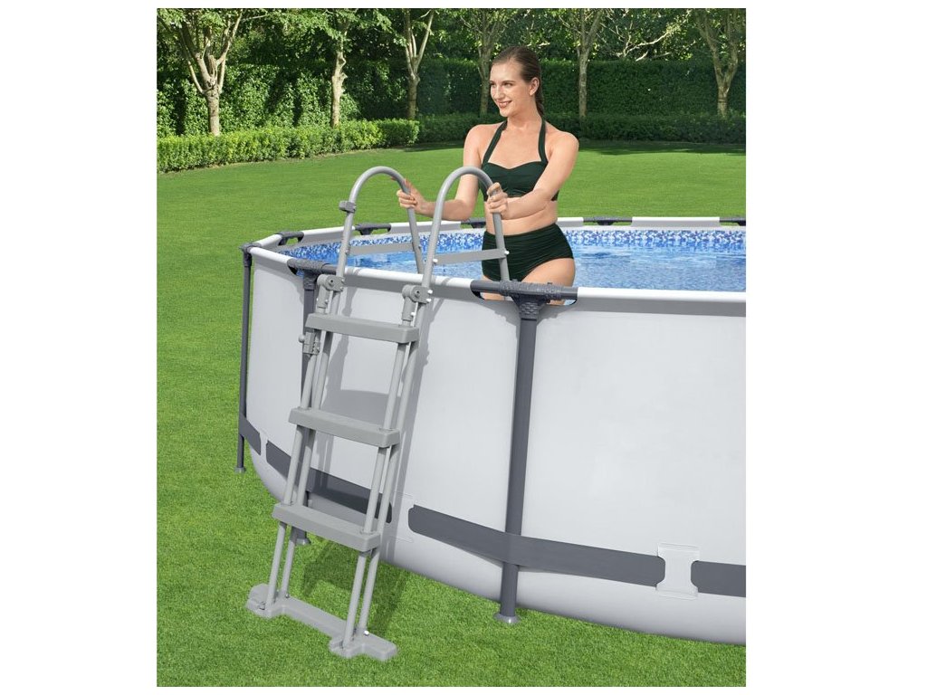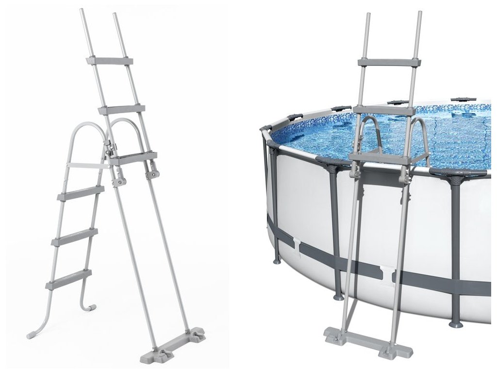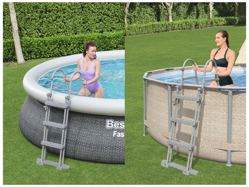 A Bestway medencelépcsők négy műanyagból készült csúszásgátló lépcsővel vannak felszerelve, amelyek kényelmes be- és kiszállást biztosítanak a medencéből. A kétoldalas felépítésnek köszönhetően az összeszerelés nagyon egyszerű.