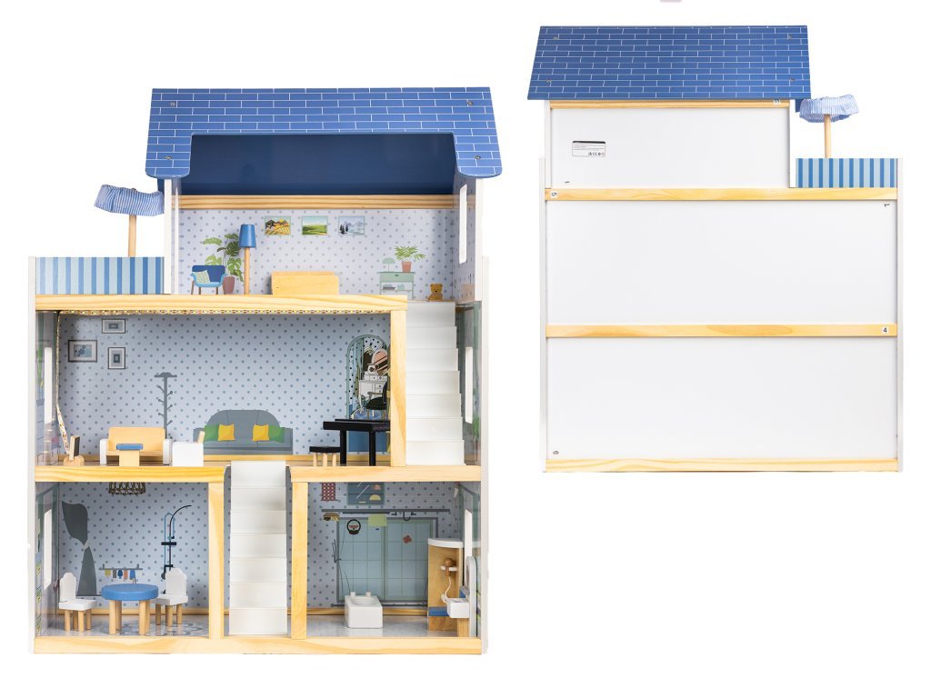 A kiváló minőségű MDF-ből és tömörfából készült, gyönyörű háromszintes babaház részletgazdag dizájnjával és élénk színeivel elkápráztat, amelyek minden gyermekszobát feldobnak.