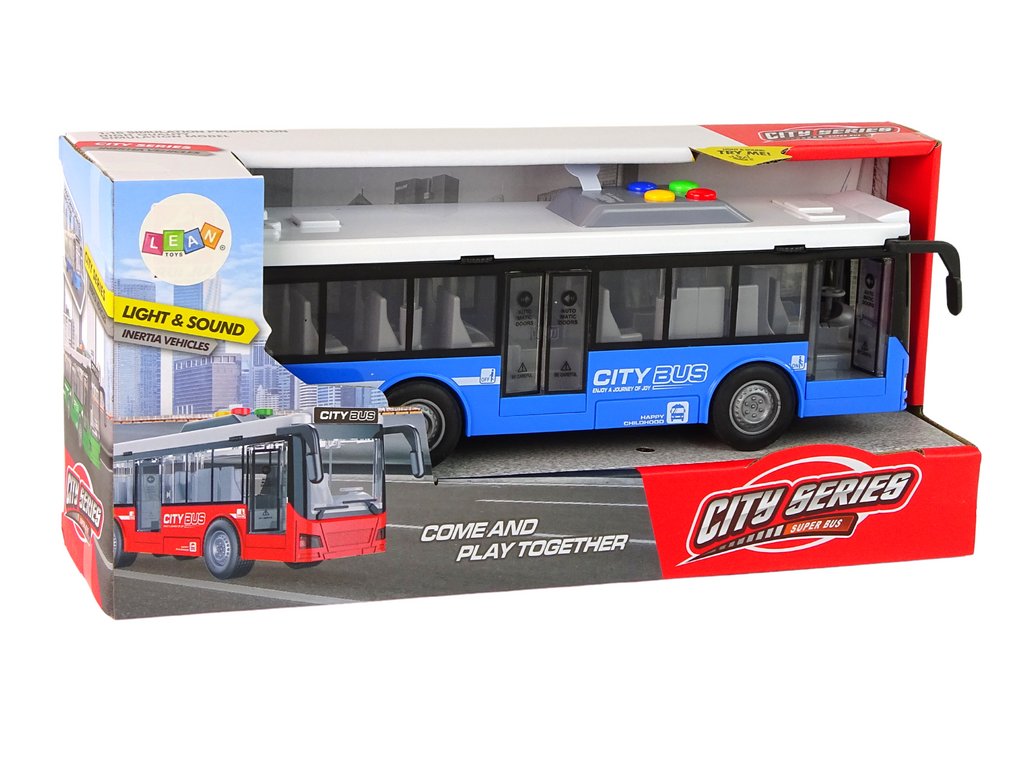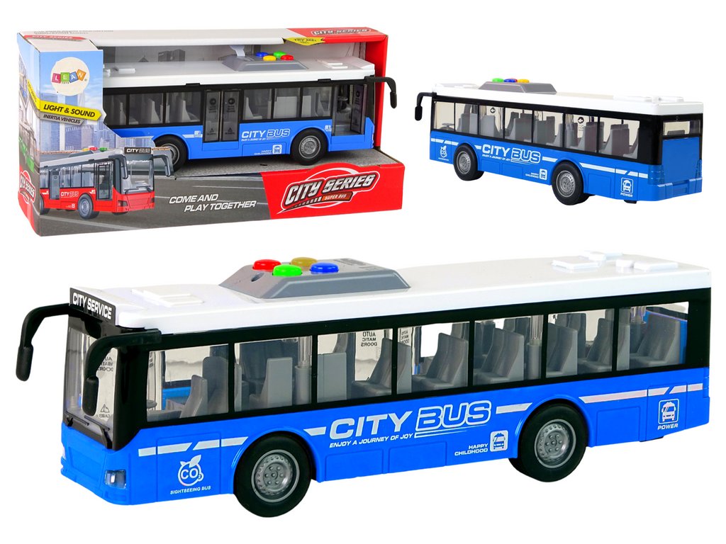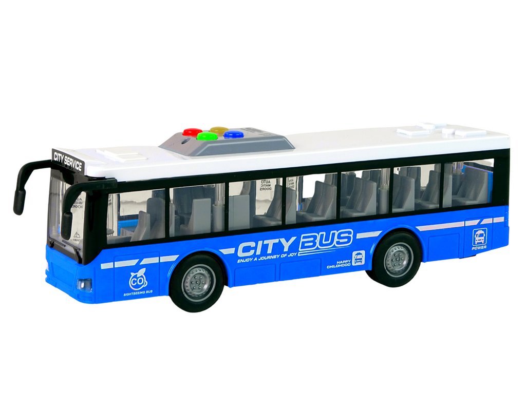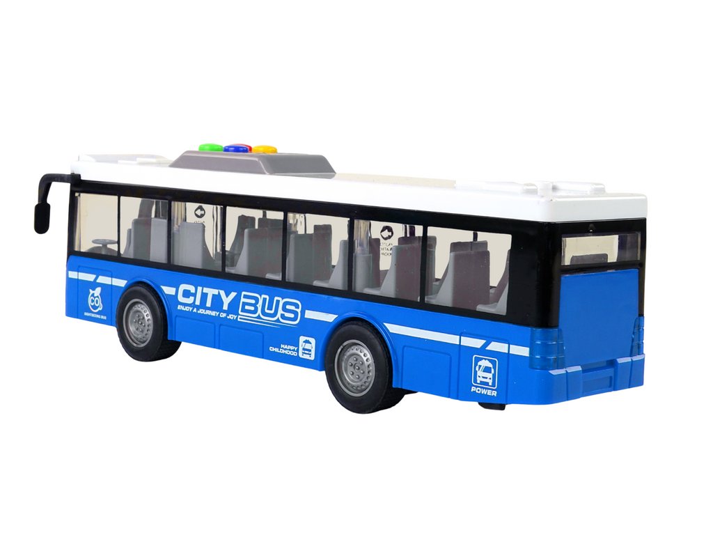 Akkumulátoros busz kék 1:16 fényekkel és hangokkal, súrlódó hajtással