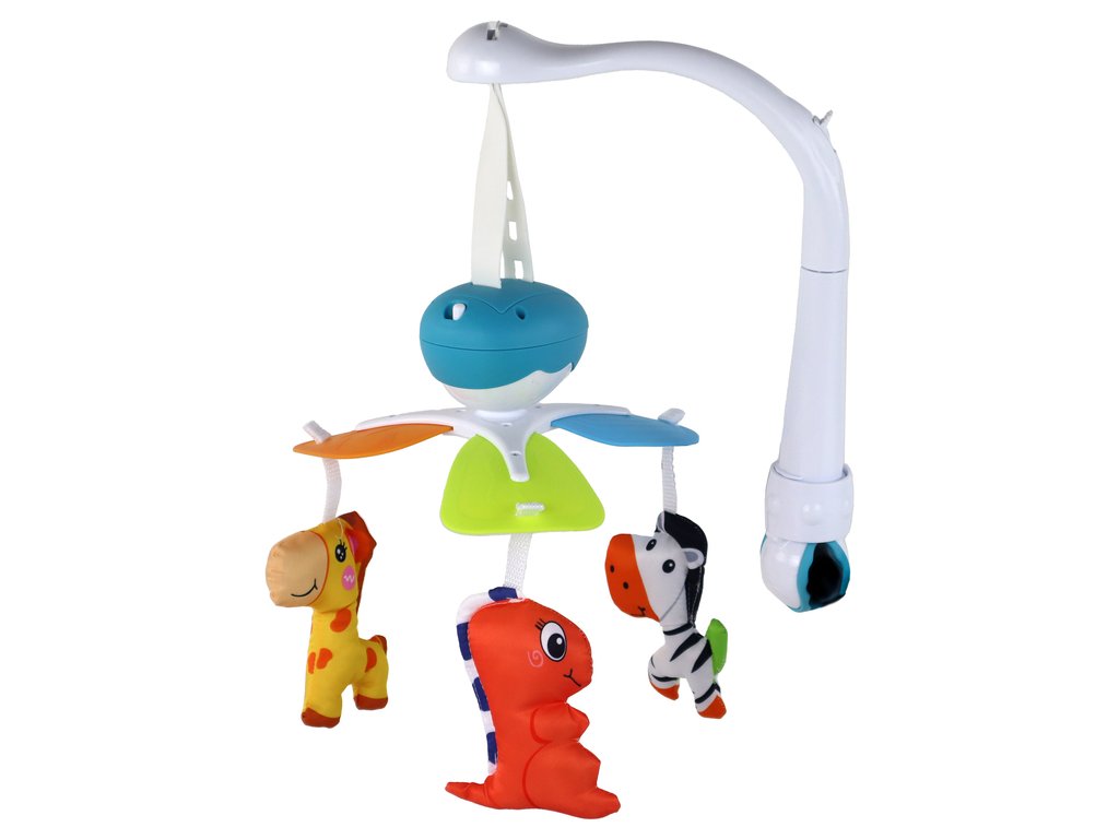 A körhinta állítható, ami azt jelenti, hogy igényeinek és ízlésének megfelelően állíthatja a magasságát. Három plüssállat van a körhintahoz rögzítve: egy zebra, egy zsiráf és egy vörös dinoszaurusz, amely a körhinta elindításakor azonnal forogni kezd. Nemcsak lenyűgöző látvány a gyermek számára, hanem inspiráló és megnyugtató szórakozás is.