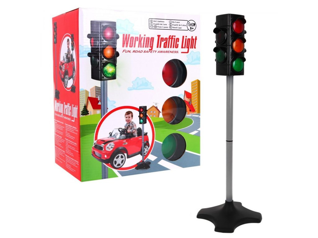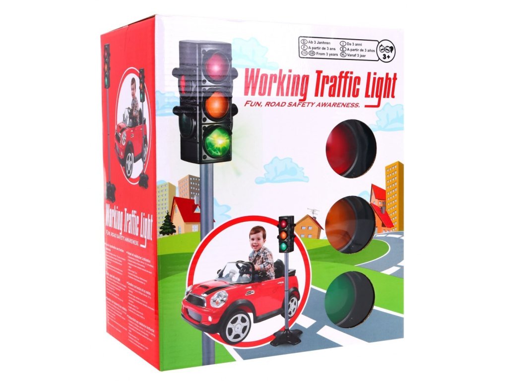 Kiváló oktató és interaktív játék gyerekeknek és kezdő sofőröknek. A játéknak köszönhetően a gyerekek megtanulják a közúti közlekedés szabályait. A játéknak 2 üzemmódja van: kézi és automatikus. Kézi üzemmódban a jelzőberendezés valamelyik gombjának megnyomásakor a világítás megváltozik. Automata üzemmódban a fények spontán módon 35 másodpercenként váltanak. A játék színes dobozba van csomagolva. Ajándéknak tökéletes. 3 x 1,5 V-os AAA elemmel működik.
