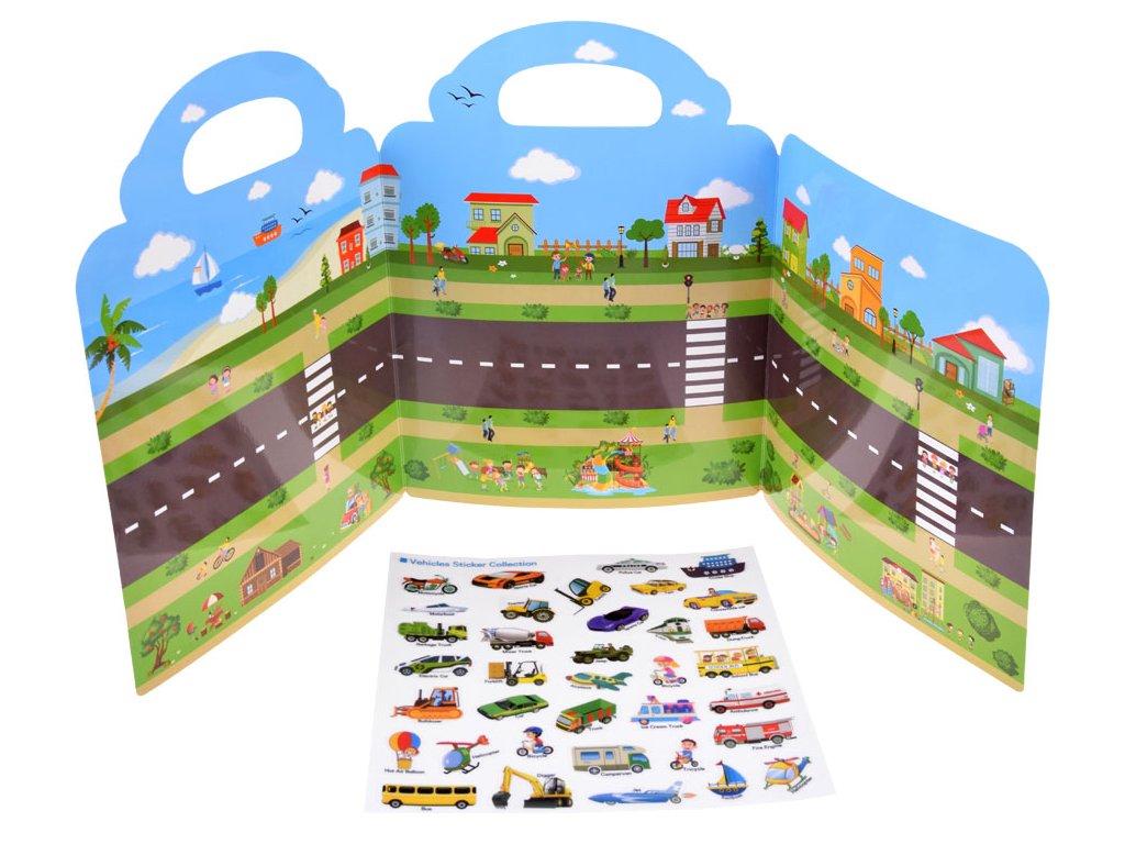 Album s nálepkami je skvělý nápad na zábavu pro každého malého tvůrce, který rád tráví čas kreativně. Tak se pusťte do toho a vytvořte svůj první album. Navrhněte a vytvořte bezpečnou cestu pro vozidla s pomocí nálepkového setu. Nálepkami se autíčky přilepují na kartonový list s hladkým povrchem. Poutavá zábava pro děti. Nálepkami lze také ozdobit různé dětské kresby nebo použít při jiných hrách. Během hry si děti procvičují jemnou motoriku, trénují své malé prsty, učí se trpělivosti a soustředění.