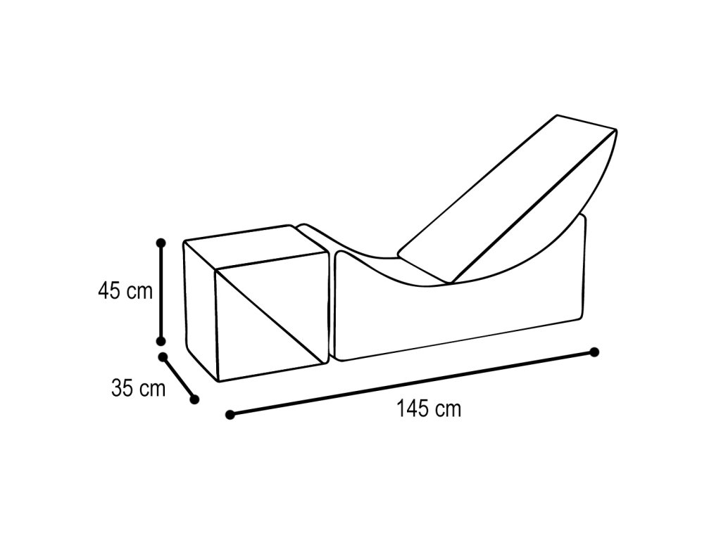 Lábtartó: Ez a modul két háromszög alakú részből áll, amelyek együtt vagy külön is elhelyezhetők. Együtt kényelmes, négyzet alakú lábtartót alkotnak. Külön-külön a részek lábtartóként vagy kis ülőkékként szolgálhatnak, ami további lehetőségeket kínál a játékhoz és a rendezéshez. Ennek a megoldásnak köszönhetően a puff még funkcionálisabb és kreatívan a gyermek igényeihez igazítható.