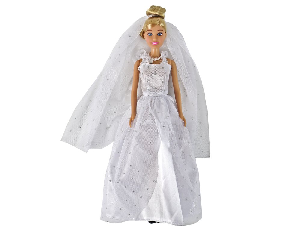 Panenka Anlily ve svatebních šatech je okouzlující hračka, která zaujme svým elegantním vzhledem a detaily. Jehjím hlavním charakteristickým znakem je krásný drdol vlasů, který je pečlivě vyčesaný a ozdobený dlouhým lesklým závojem. Díky závoji vypadá panenka jako skutečná nevěsta, připravená na svůj velký den.