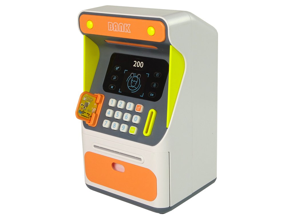 Pokladnička bankomat se senzorem rozpoznávání obličeje a PIN kódem je interaktivní hračka, která dětem pomáhá učit se spořit zábavnou formou. Nabízí funkce jako počítání mincí, nastavování spořicích cílů a simulaci operací s kartou.