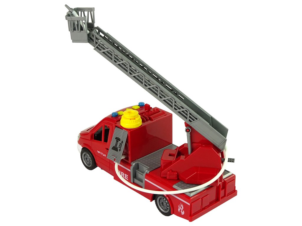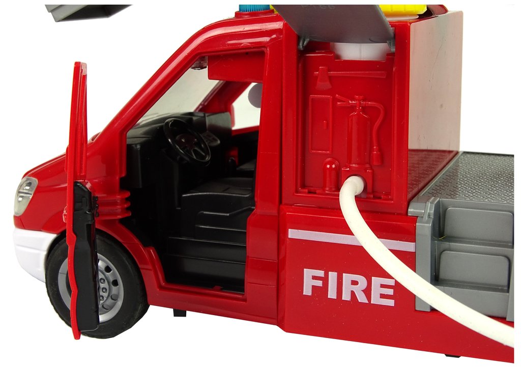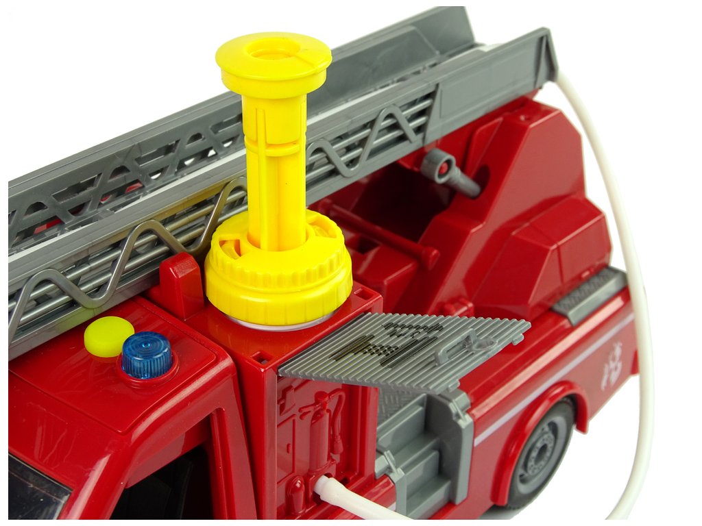 Vůz má v horní části kabiny žlutý otvor, kterým lze vodu snadno nalévat dovnitř. Po několika stisknutích můžete vidět, jak z hadice nainstalované na určeném místě uniká voda. Stiskněte tlačítko na horní straně nádoby a sledujte, jak voda začíná tryskat ven. Dokáže uhasit malé požáry.