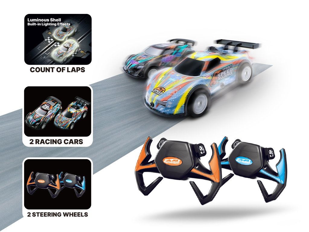 A nagy autópálya éles kezdetekből és négy 360 fokos hurokból áll. A készlet tartalmaz két kisautót, két távirányítót és egy körszámlálót. Az autodráha két sebességi móddal rendelkezik: lassú és gyors.
