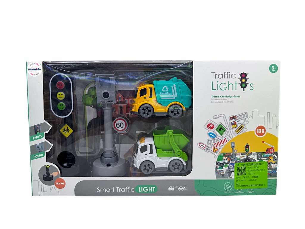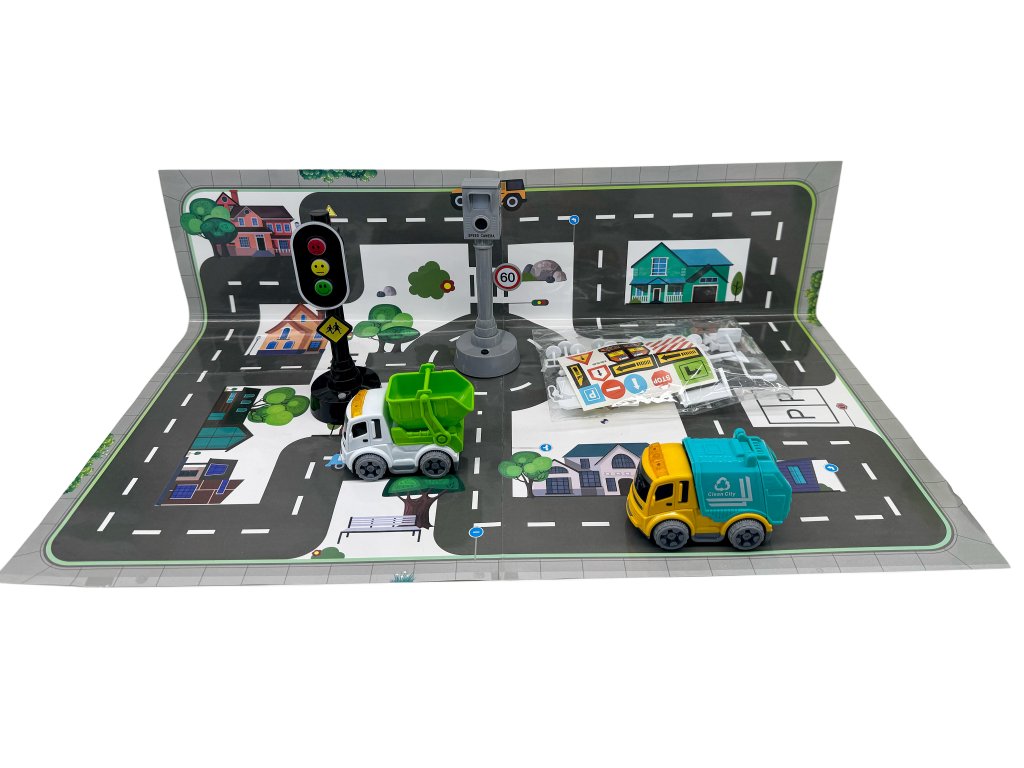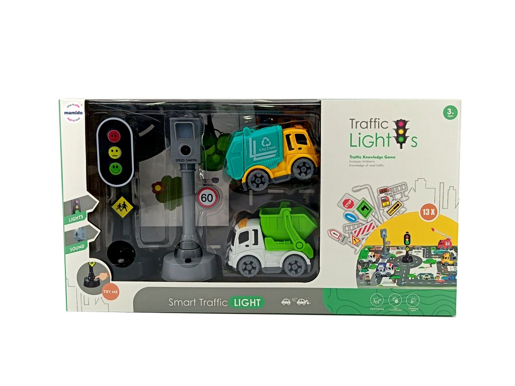 Bemutatkozik egy játékautó-készlet fényjelzésekkel és közlekedési táblákkal. Ideális készlet a közúti közlekedési szabályok és a biztonságos közlekedés elsajátításához. Ez a készlet egy oktatójáték, amely a jövőben megtérül gyermeke számára.