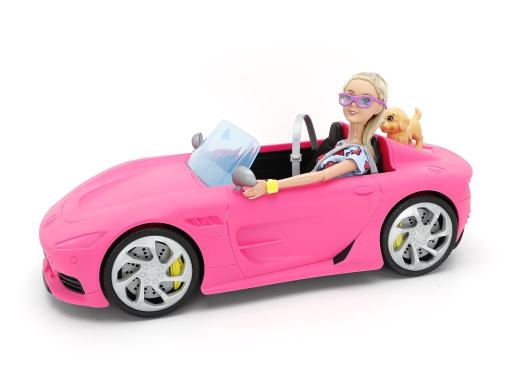 Sasha baba 29 cm, Rózsaszín Cabriolet kisautó MT1612