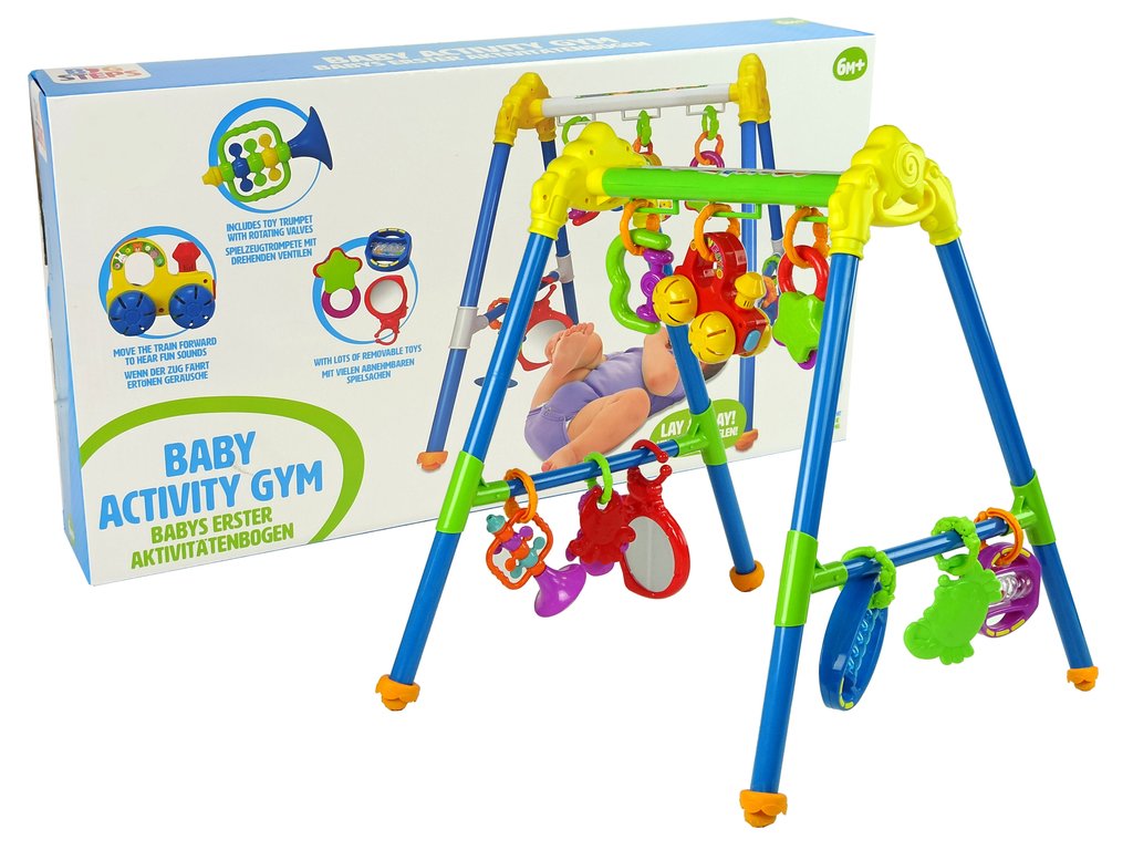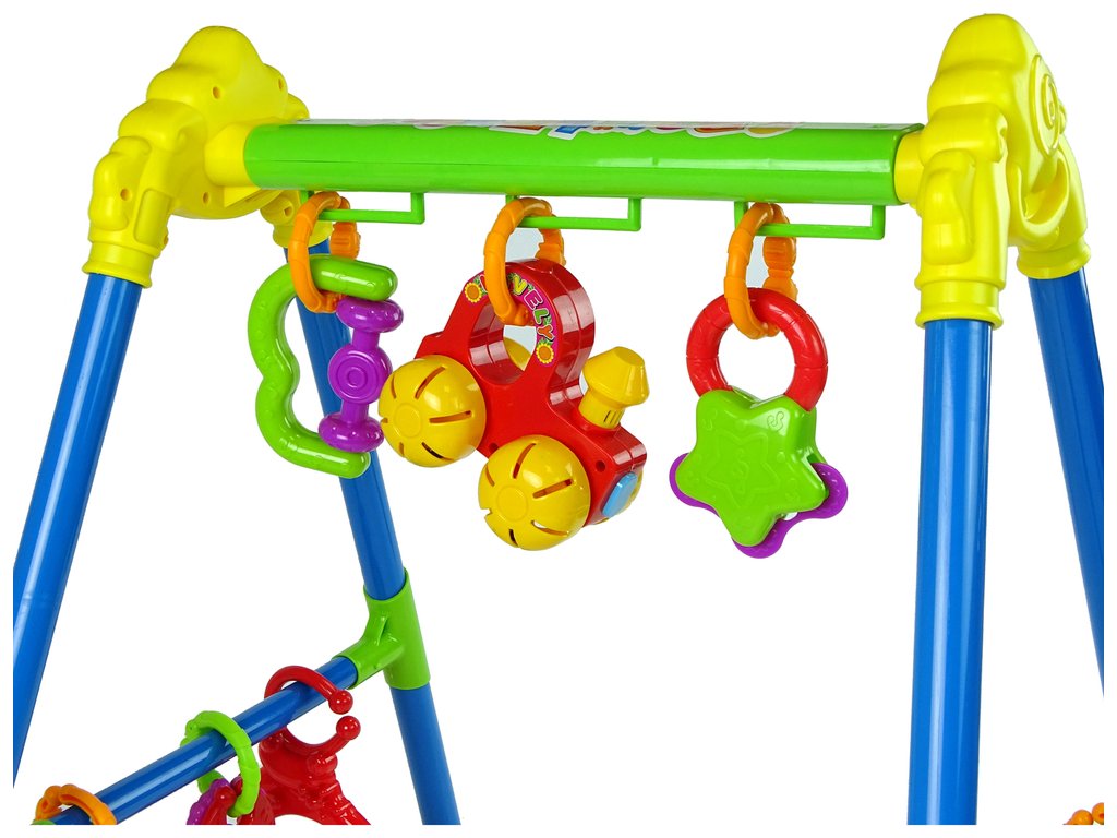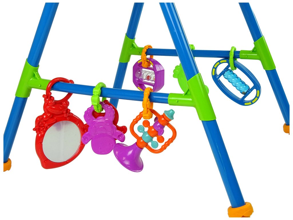 A járóka ideális azoknak a babáknak, akik kúszni tanulnak. A készlet 9 db csörgőt tartalmaz, melyek kerekek segítségével rögzíthetők a keresztrúdra. A játék fejleszti a szem-kéz koordinációt, a kézi készségeket, valamint megtanítja a színek és formák felismerésére.