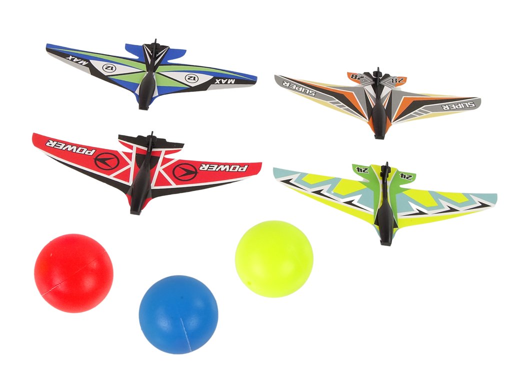 Könnyűségének köszönhetően a repülőgép több méteres távolságra is képes repülni. A lövészversenyek minden rajongója egy ilyen lövészrel gyakorolhatja a leghosszabb repüléseket, majd versenyt rendezhet a barátokkal. Egy másik szórakoztató lehetőség a színes műanyag golyók lövöldözése. A készlet tartalma: - kilövő - 4 db repülőgép - 3 színes golyó