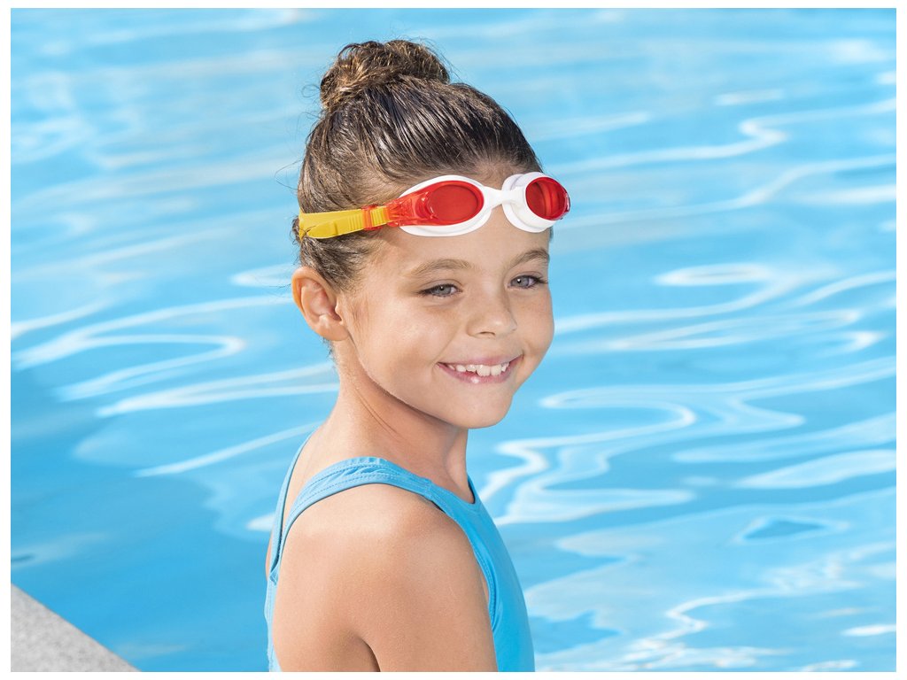 Červené brýle na plavání a potápění pro nejmenší od firmy Bestway jsou ideální na první plavecké hodiny.