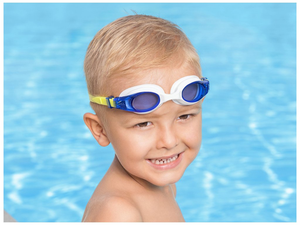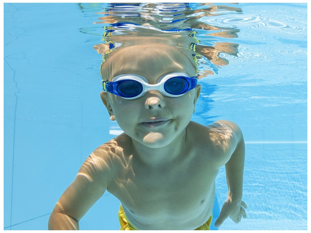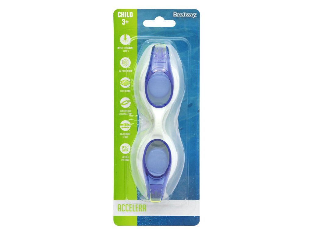 Modré plavecké brýle Accelera pro malé plavce od firmy Bestway jsou ideální pro první plavecké lekce.
