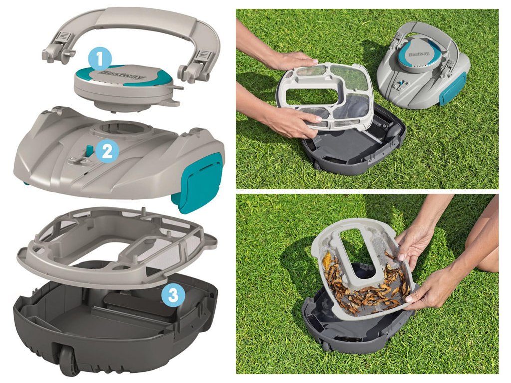 Vysavač se po ponoření do vody automaticky aktivuje a během provozu samostatně sbírá nečistoty, jako jsou listí, písek a další drobné usazeniny. Systém směrového proudění zajišťuje plynulý pohyb po dně bazénu a umožňuje vysavači vyhýbat se překážkám.