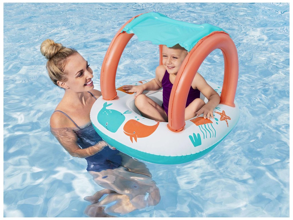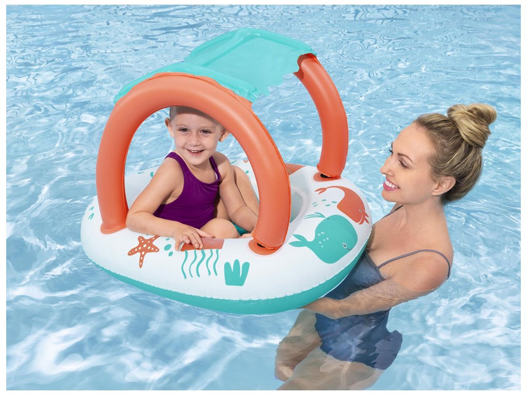 Praktická odnímatelná stříška UV Careful™ poskytuje ochranu před slunečními paprsky. děti od 3 let si budou moci užívat bezpečné vodní hrátky a zároveň budou chráněny před nadměrným slunečním zářením.