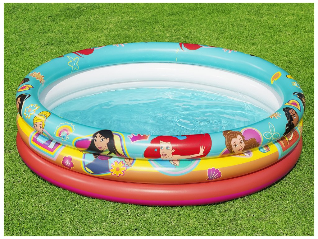 A Bestway 122 x 30 cm-es felfújható gyermekmedencéje (91099-es modell) ideális játszótér a kis hercegnők számára. A legfiatalabbakat szem előtt tartva tervezett medence bájával és színeivel elvarázsol, melyekben a népszerű mesékből származó hercegnőkkel kapcsolatos motívumok dominálnak.