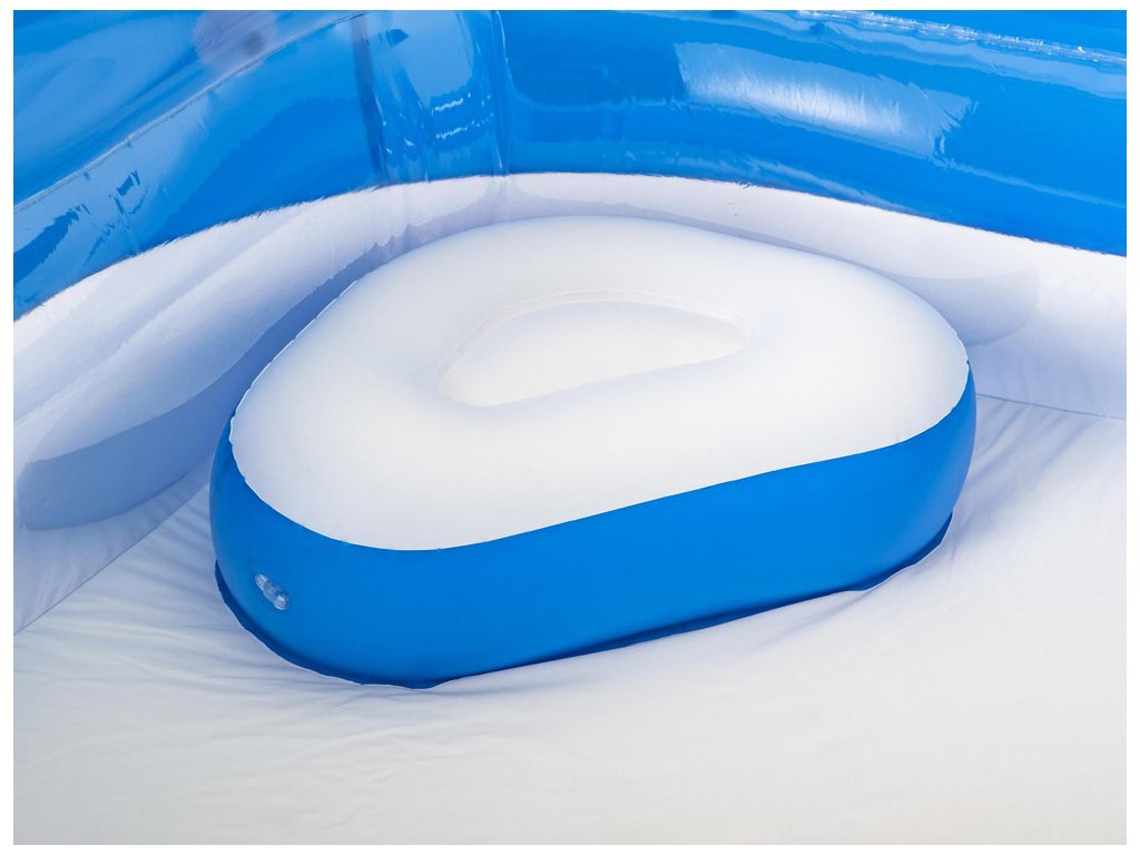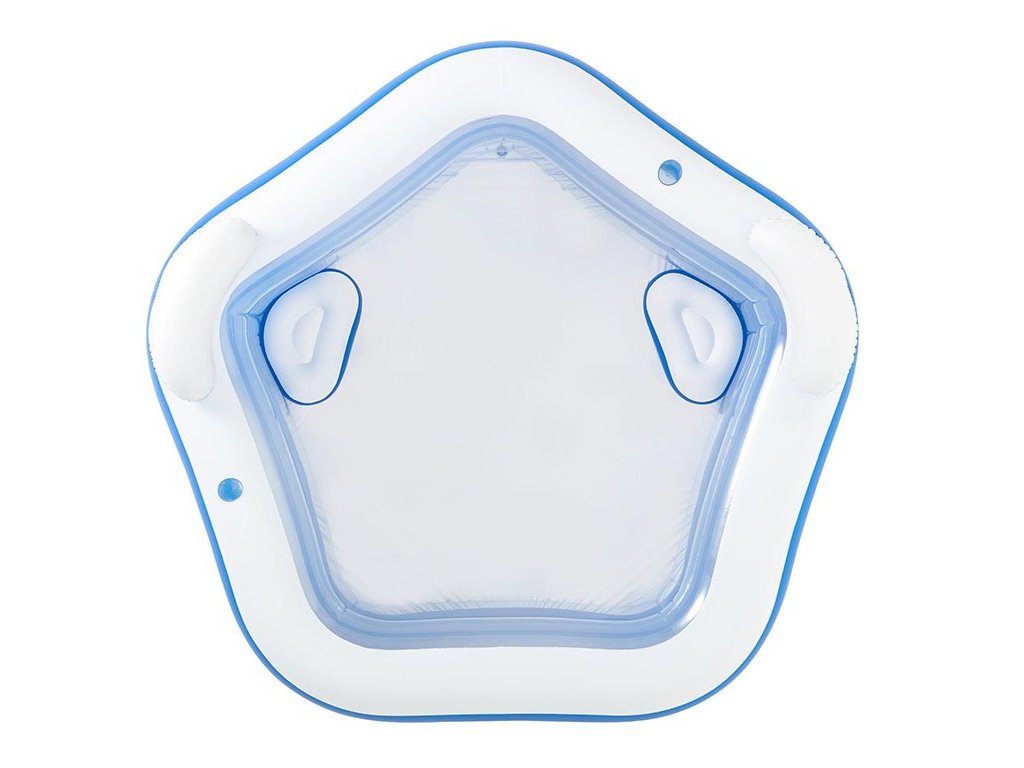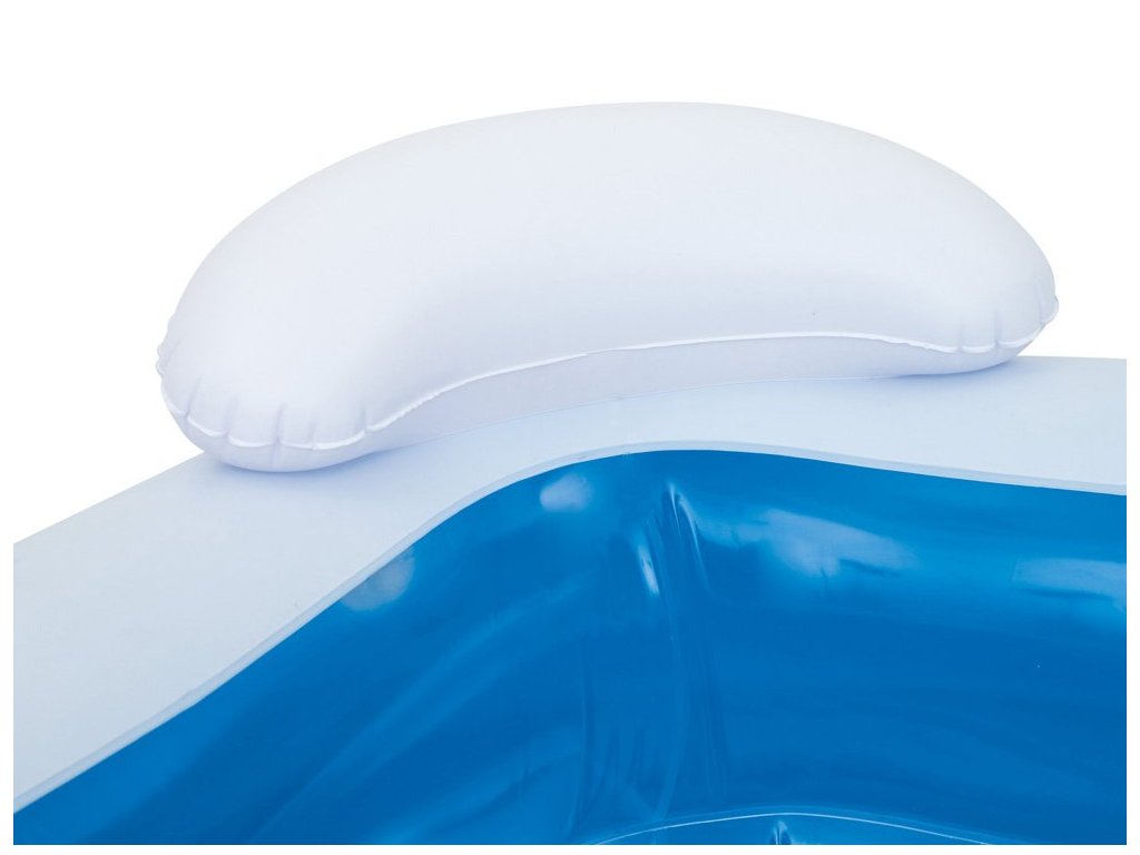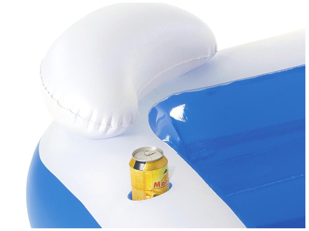 Ennek a medencének 2 különálló, kör alakú légkamrája van, amelyek emellett biztosítva vannak a légszivárgás ellen. Kék és fehér színben tökéletes az egész család számára, puha felfújható falaival, fejtámláival és még italtartóival is garantálja a kikapcsolódást a forró napsütéses napokon. Ez mindenki számára nagyszerű szórakozást nyújt a szabadban való játékhoz.