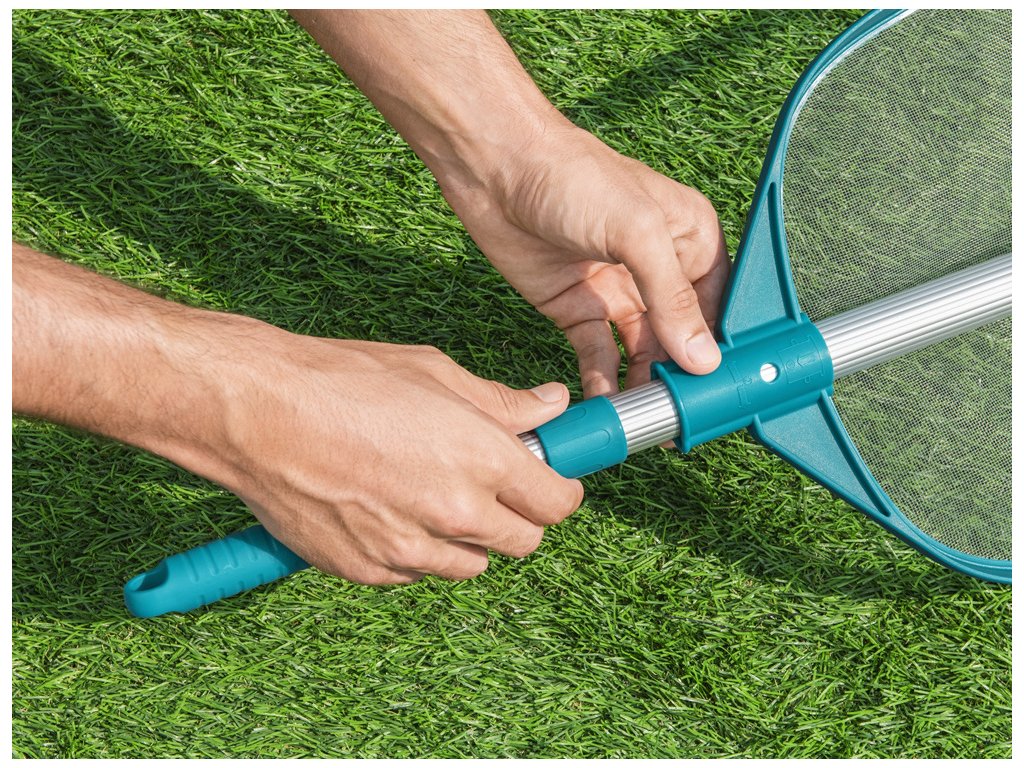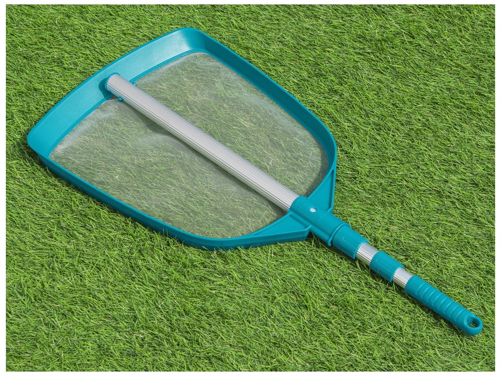 Lehká hliníková teleskopická tyč se síťkou vám usnadní udržování čistoty v bazénu. Délka tyče je nastavitelná od 63,5 cm do 160 cm. Zakončení je vyrobeno z odolného a pevného plastu, který je spojen s robustní, pevnou sítí s jemnými oky. Díky svým zaobleným okrajům je navíc zcela bezpečná pro použití v jakémkoli typu bazénu.