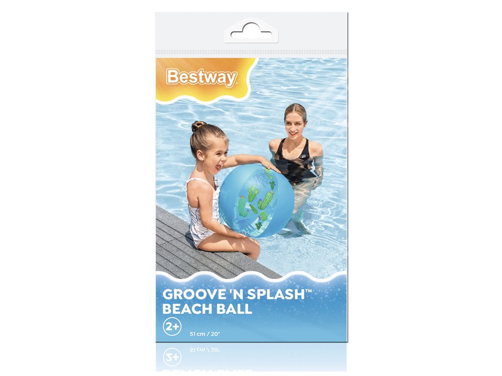 Lehká, nafukovací míč Groove 'n Splash od společnosti Bestway se bude hodit nejen na pláži, ale i do domácího bazénu nebo při hrách na zahradě. Míč o průměru 51 cm poskytne spoustu zábavy jak dětem, tak dospělým, a navíc zajistí denní dávku pohybu na čerstvém vzduchu. Určitě se hodí při každodenních aktivitách s dítětem, nejen během dovolené. Hraní s míčem rozvíjí motorickou koordinaci a zlepšuje pohyblivost těla.