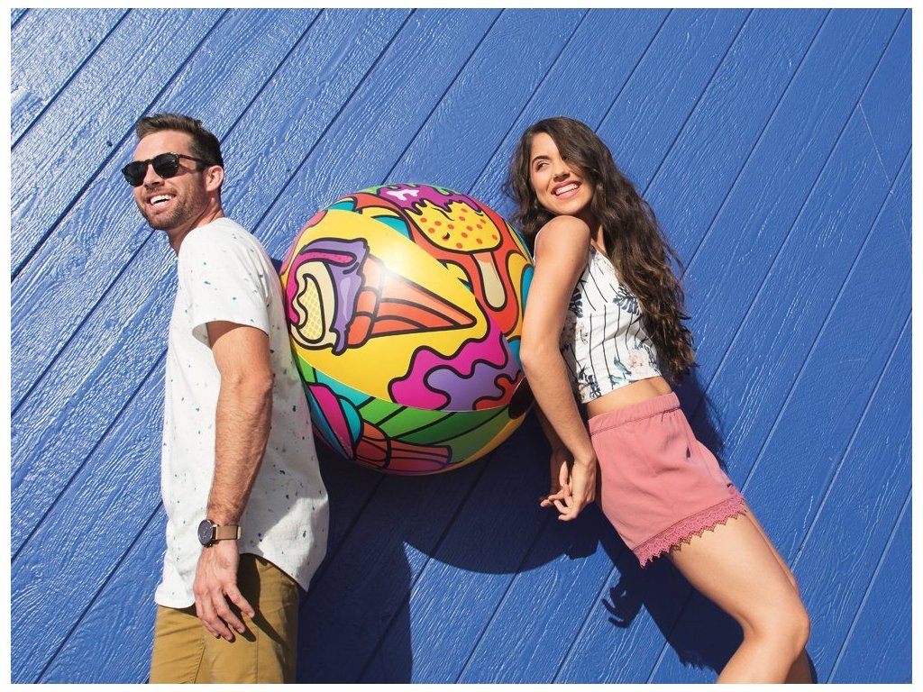 Koule o průměru 91 cm poskytne malým i velkým spoustu skvělé zábavy na čerstvém vzduchu. Pohyb s míčem rozvíjí motorickou koordinaci a zlepšuje motorické dovednosti, což je samo o sobě velkým plusem pro zdraví. Koule je vyrobena z vinylového materiálu s letní veselou, barevnou grafikou, která jistě upoutá pozornost ostatních návštěvníků pláže.