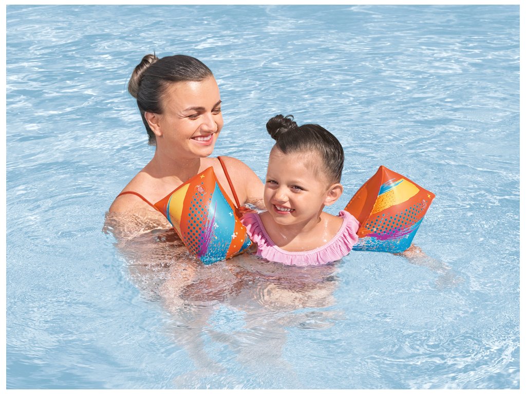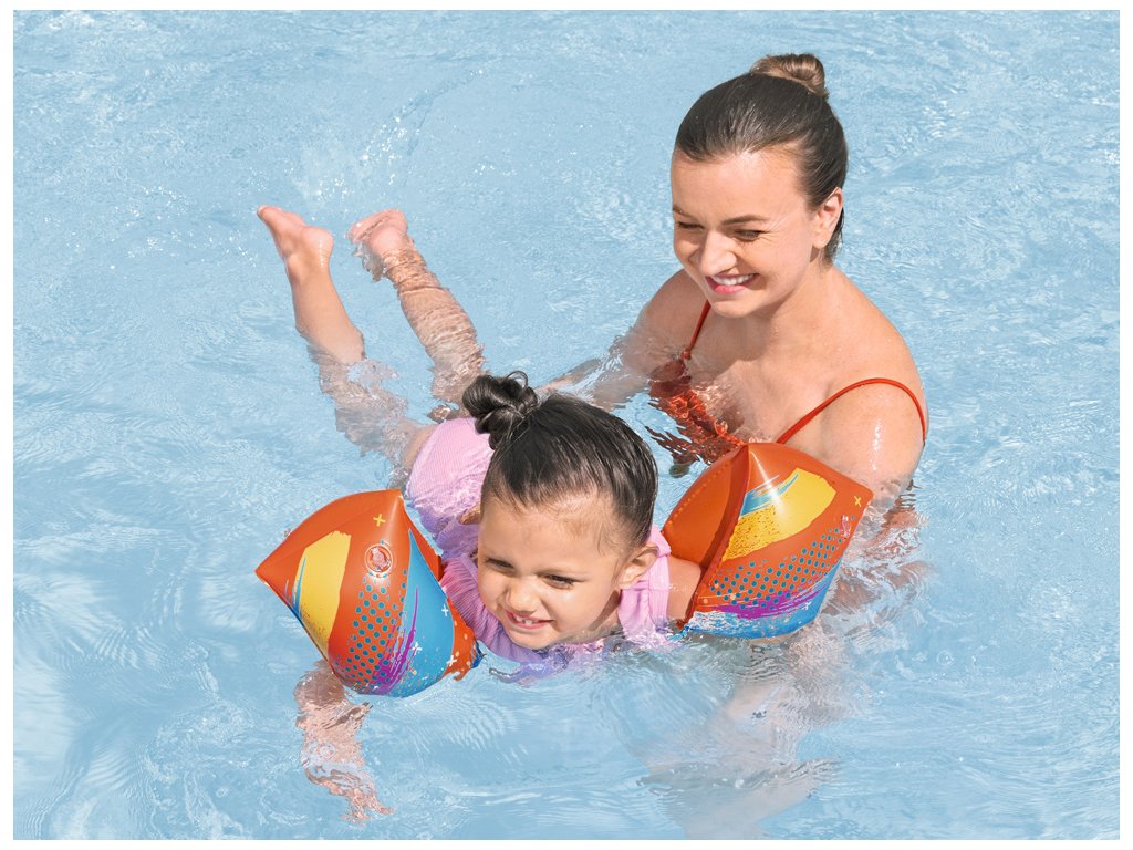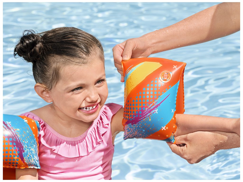 K colorful Summer graphics a pomerančová barva zajistí, že dítě bude velmi dobře viditelné v bazénu, moři nebo jezeře. Rukávky jsou velmi lehké a byly perfektně tvarovány, takže neomezují volnost pohybu při plavání ani hraní. Jsou určeny pro děti ve věku od 3 do 6 let.