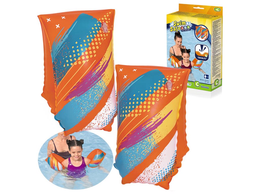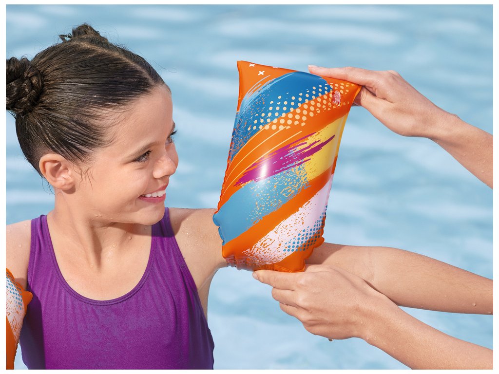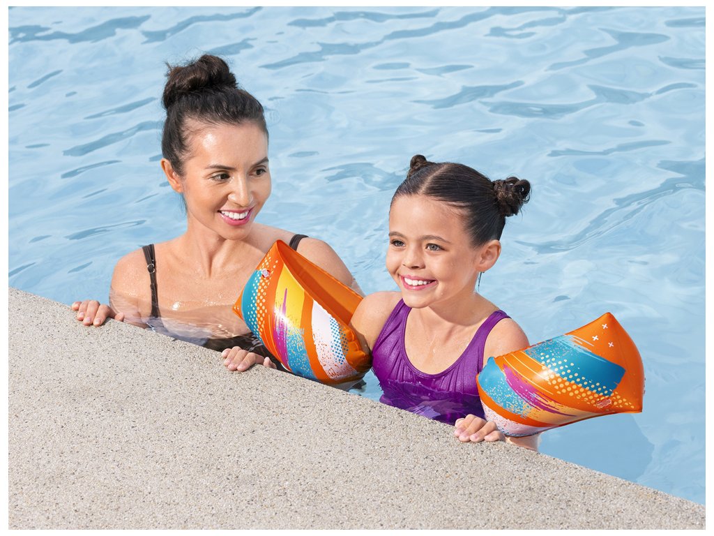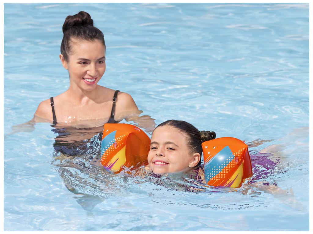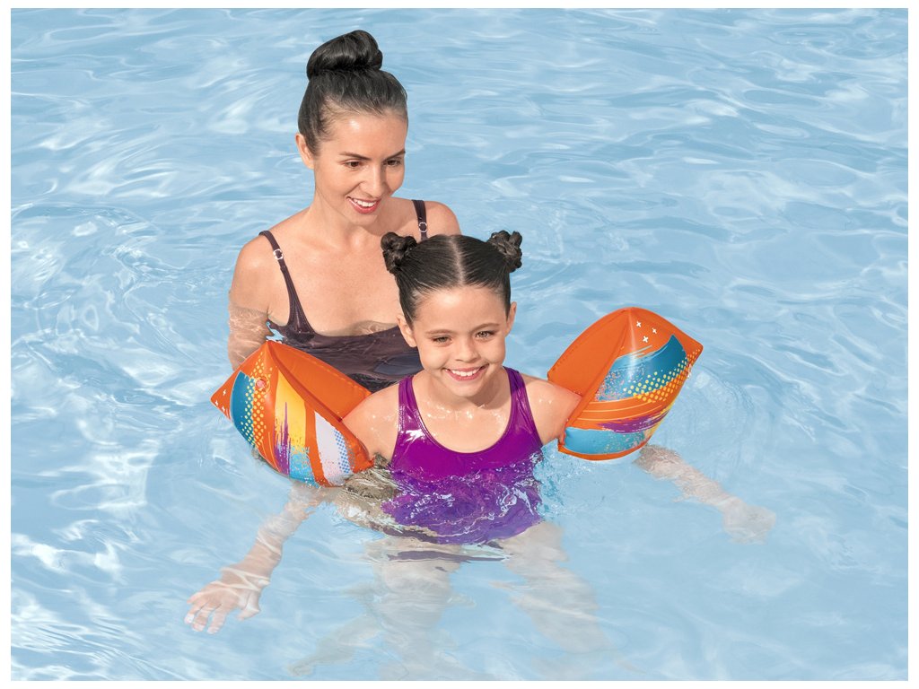 Barevná letní grafika a pomerančová barva zajistí, že dítě bude na bazénu, moři nebo jezeře velmi dobře viditelné. Rukávky jsou velmi lehké a skvěle tvarované, takže neomezují svobodu pohybu při plavání ani při hře. Jsou určeny pro děti ve věku mezi 5 a 12 lety.