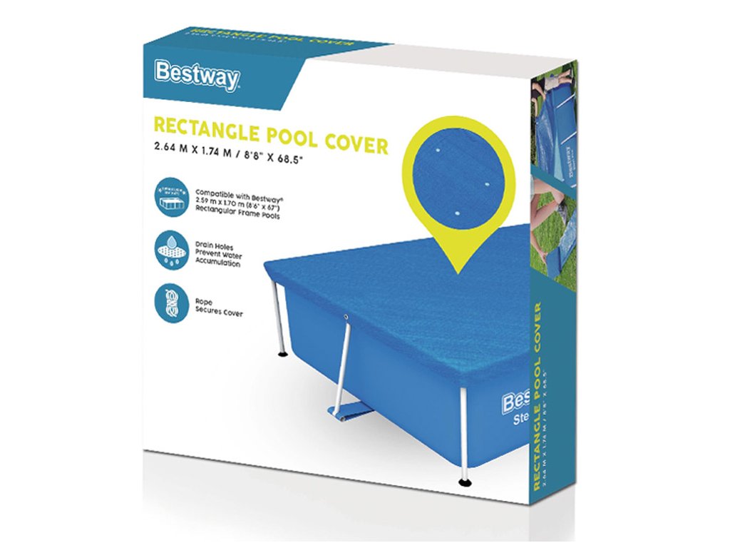 Krycí plachta Bestway je praktickým řešením pro ochranu bazénu před nečistotami a nepříznivými povětrnostními podmínkami. Zabraňuje vniknutí hmyzu, listí, ptáků a drobných srážek do vody, čímž pomáhá udržet bazén čistý. Plachta navíc zajišťuje dodatečnou tepelnou izolaci, čímž omezuje tepelné ztráty vody.