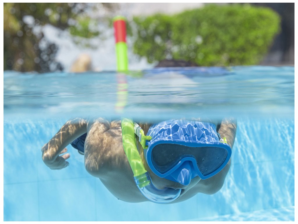 Průhledné čočky masky jsou vyrobeny z polykarbonátu s UV ochranným povlakem – chrání oči dítěte před ostrým slunečním zářením. Perfektně se hodí do oceánu nebo na domácí bazén.