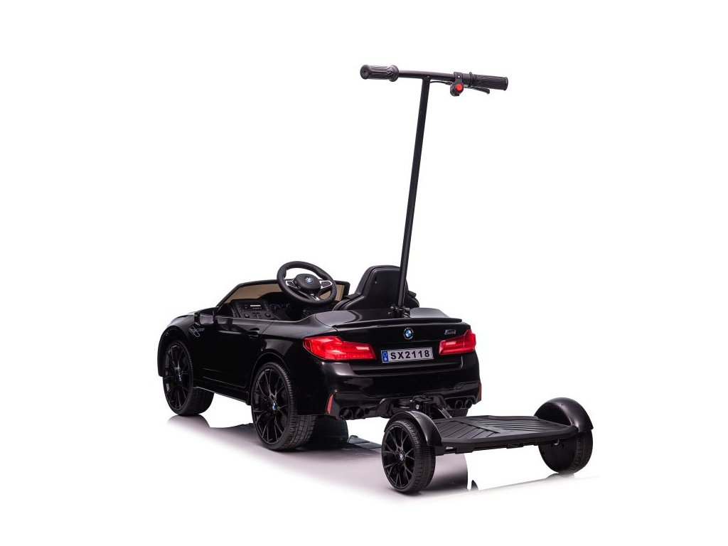 BMW M5 elektromos kisautó feketére festve vezetőrúddal