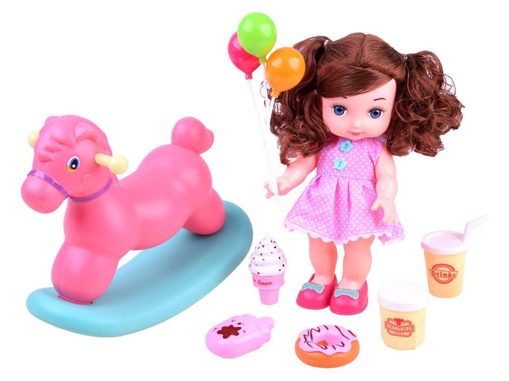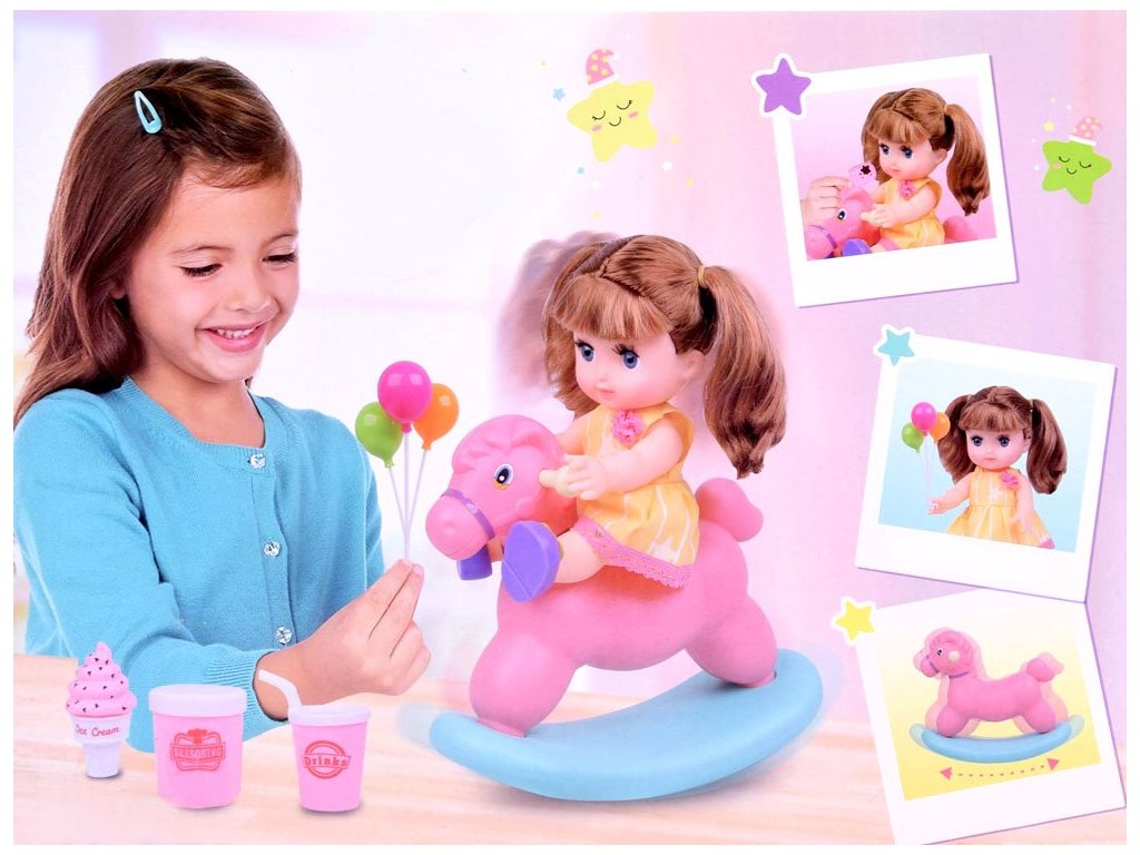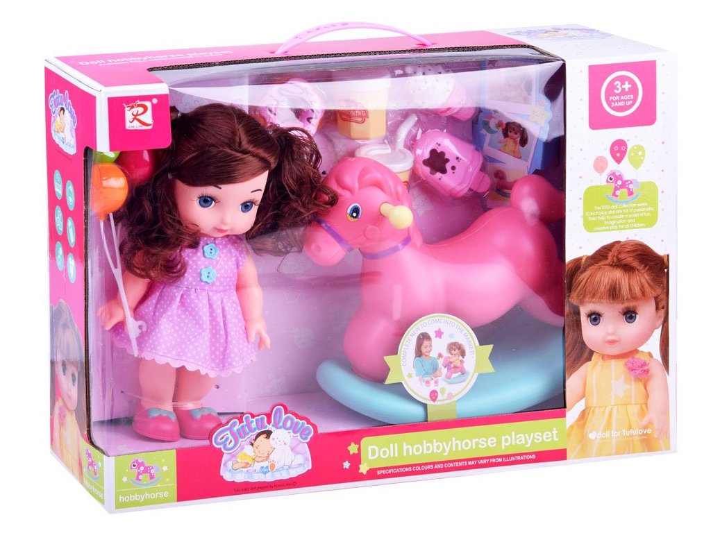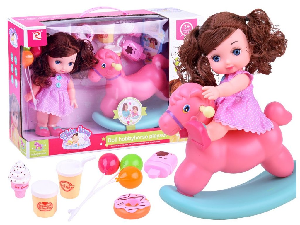 A gondosan megmunkált baba ideális a fésüléshez, és részletesen varrott ruházattal rendelkezik. Csizmája levehető, a kiváló minőségű szintetikus anyagból készült test pedig kellemes tapintású. A hintaló műanyagból készült, kellemes színekben, amelyek vonzzák a tekintetet és stabil ülést biztosítanak a babának.