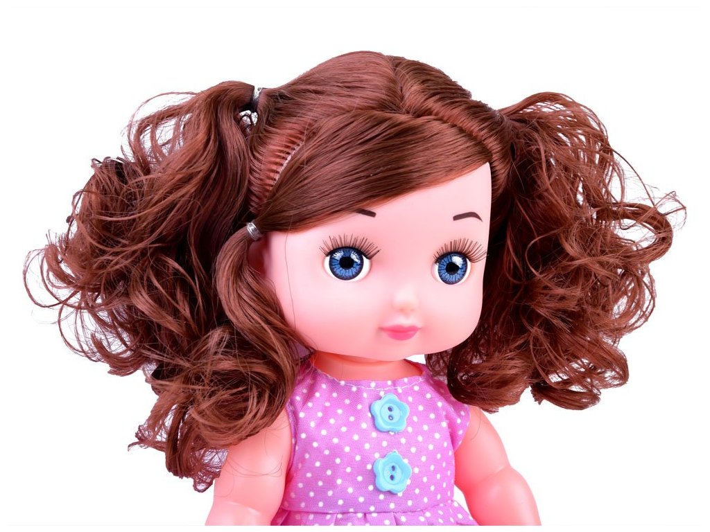 - - hosszú göndör hajú és kék szemű baba