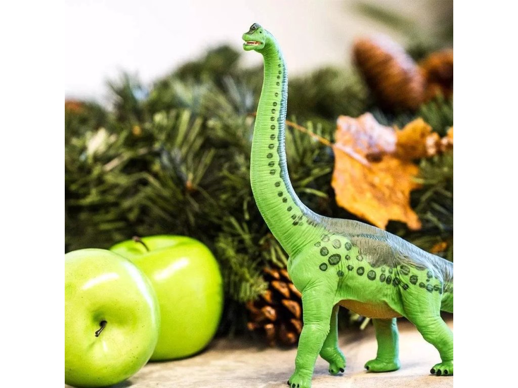 Dinoszaurusz figura elegáns, ívelt nyakkal, amely a fák magasabb ágainak elérésére szolgált. Professzionálisan formázott és kézzel festett, gondosan kidolgozott részletekkel.