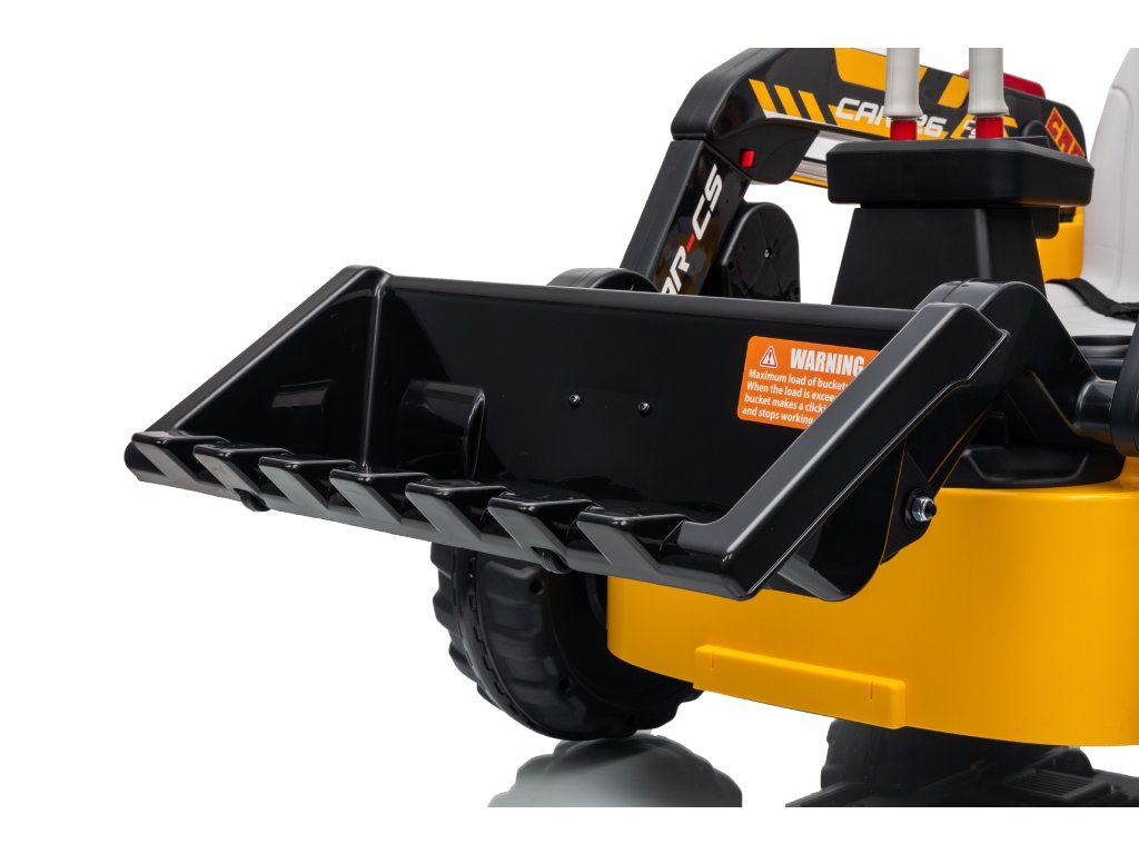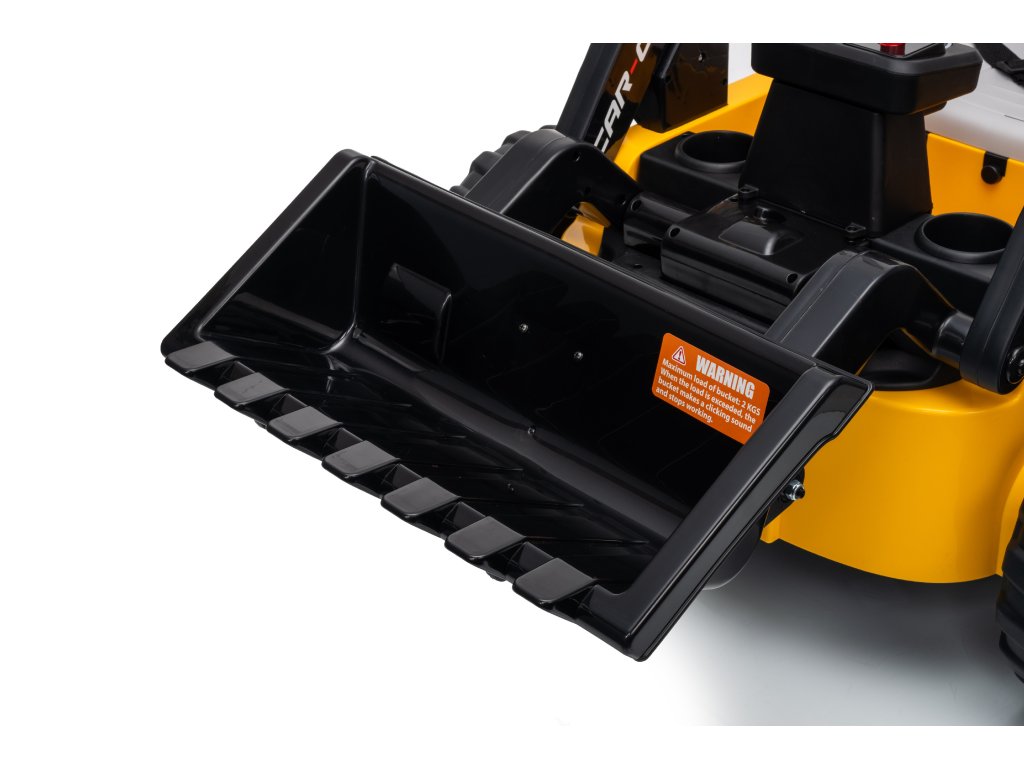 A lenyűgöző funkcionalitáson kívül a gyerekrakodó zenelejátszóval, Bluetooth funkcióval, USB bemenettel és jack kábellel (AUX) is rendelkezik, így a gyerekek kedvenc dalait hallgathatják játék közben. A szülők nyugalma érdekében a jármű számos biztonsági elemmel van felszerelve, mint például a kétpontos öv és az oldalsó védőkorlátok, valamint egy távirányító, amely lehetővé teszi a szülők számára, hogy távolról irányítsák a rakodót és a kanalat.