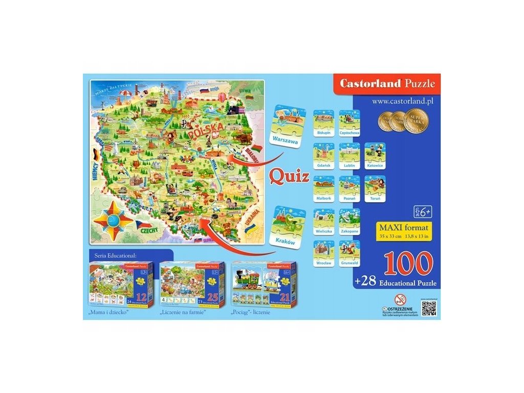 Castorland Puzzle Térkép Lengyelország 100 darab és kvíz