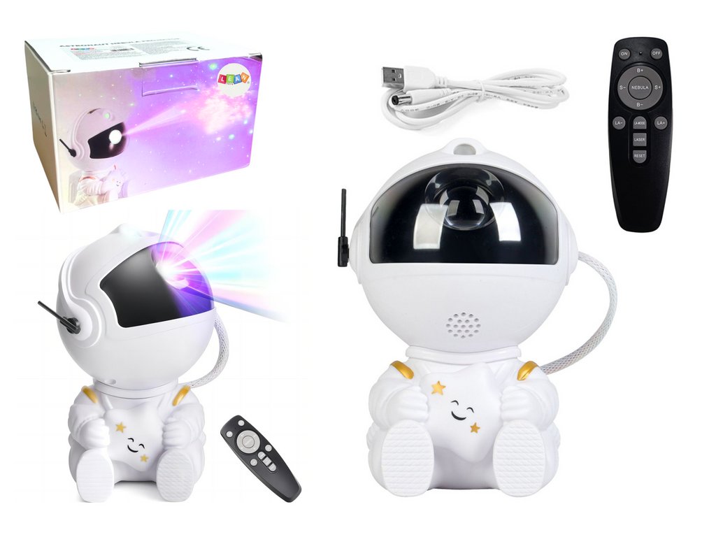 Az Asztronauta csillagprojektor egy kivételes dekoráció, amely varázslatos légkört teremt minden enteriőrben, különösen a gyermekszobában. Ennek a lámpának köszönhetően a mennyezet, a falak és az ablakok csillagos égbolttá változnak, amely egyedi légkört teremt a pihenéshez és a nyugodt elalváshoz. A lámpa tökéletesen utánozza a csillagokat és a galaxisokat, lehetővé téve az éjszakai égbolt szépségének élvezetét otthoni környezetben.