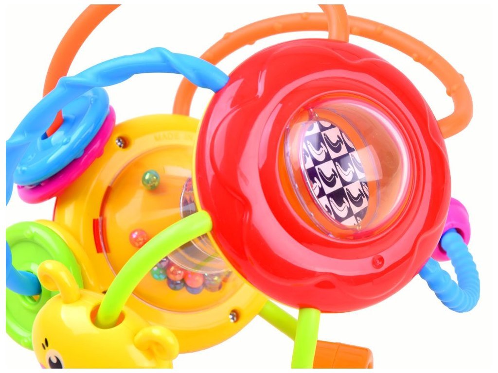 Chrastítko jako barevná koule je určena pro nejmenší děti, které poznají svět kolem sebe. Koule je vybavena mnoha funkcemi, které pozitivně ovlivní pohybové schopnosti batole, a barvy a tvary vzbudí zvědavost dítěte. Hračka je vyrobena z vysoce kvalitních materiálů, pečlivě dokončena, takže zábava je zcela bezpečná.