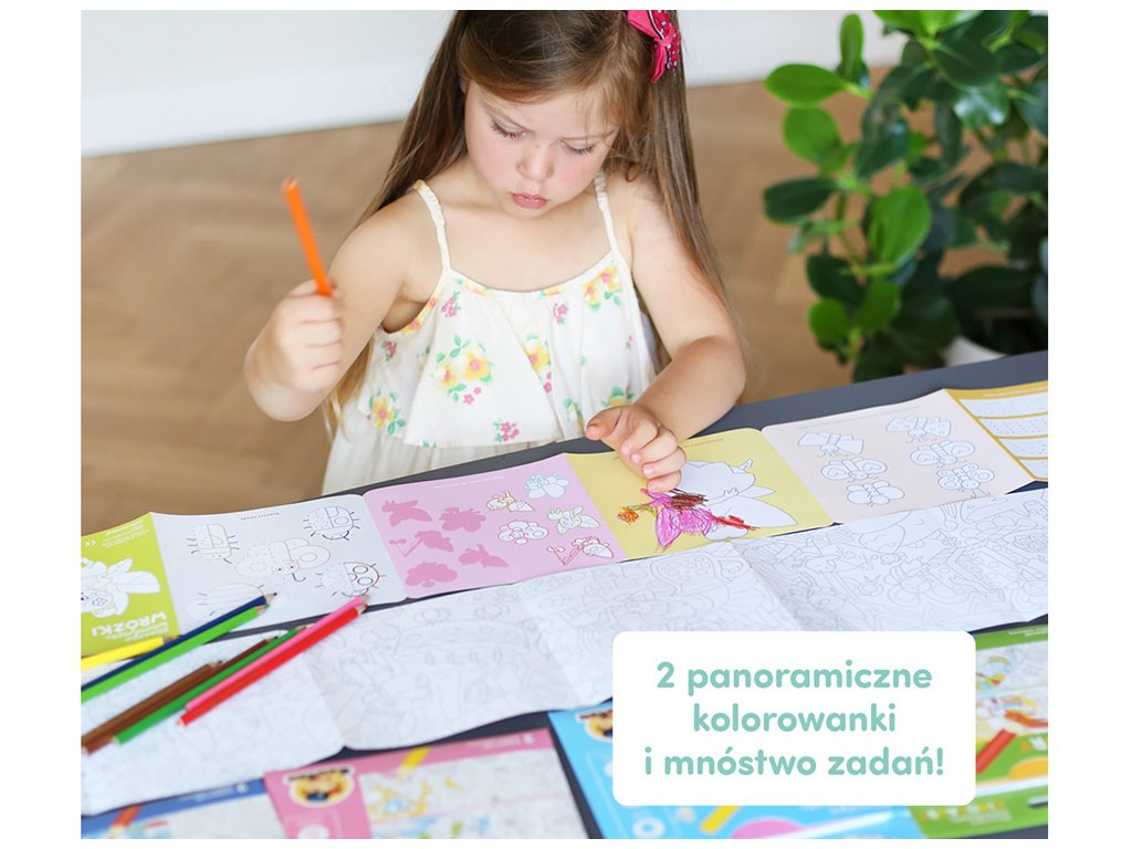A készlet 2 hosszú harmonikakönyvet tartalmaz, tele kreatív játékokkal . Igazi kincs minden gyermek számára, aki szereti a mesék színezését.