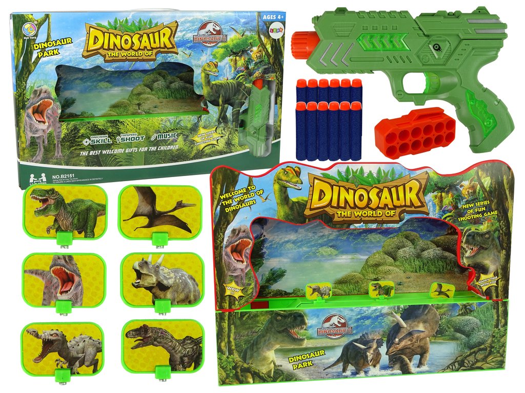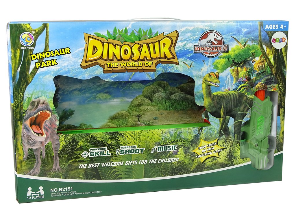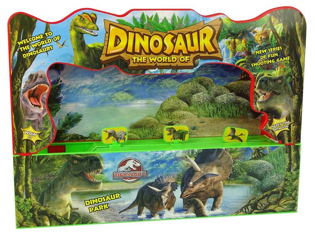 A nagy célpont azt a környezetet mutatja, amelyben a dinoszauruszok élnek. Mágnessel vannak rögzítve egy speciális mozgó szalagra. A feladat az, hogy pisztollyal lődd le a dinoszauruszt. Kíváncsi vagyok, elsőre sikerül-e? Ideje kideríteni.