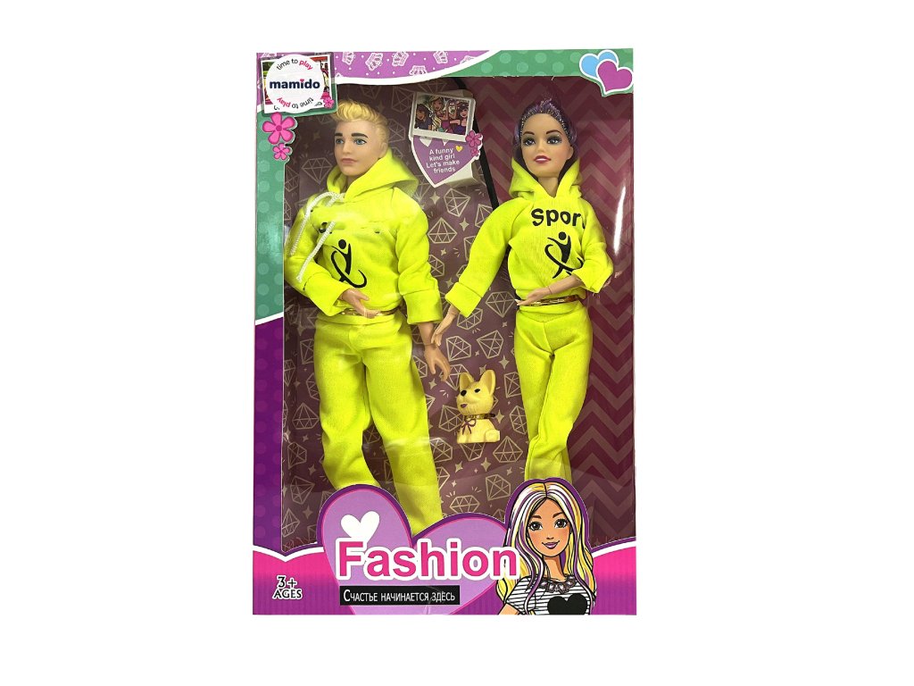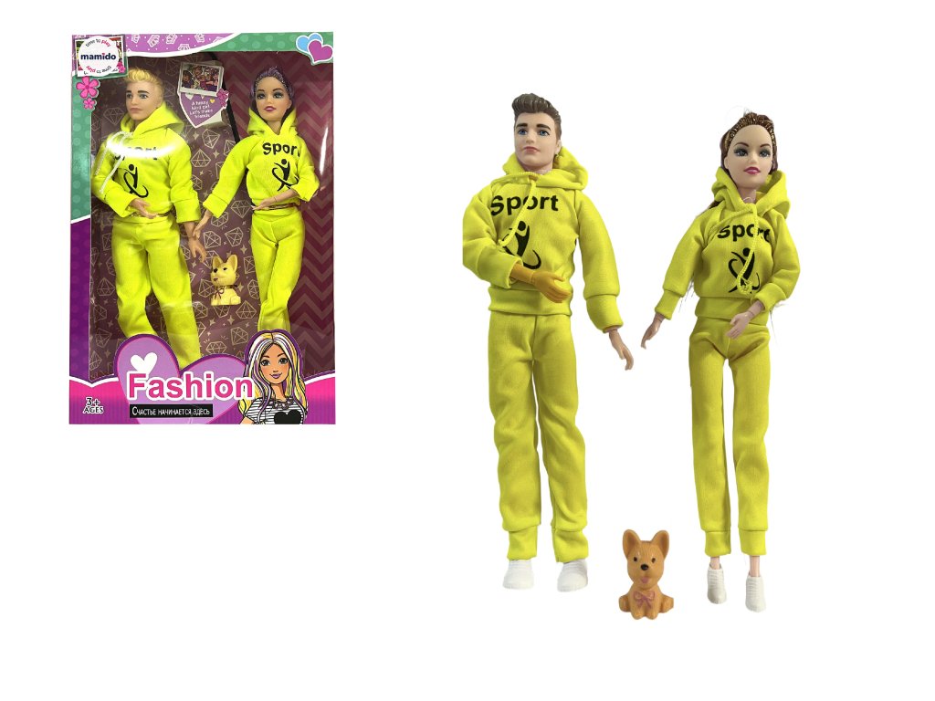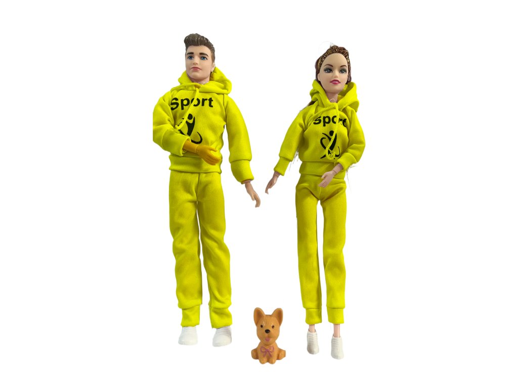 Divatpár babák kutyával, sportos pár sárga MT1192