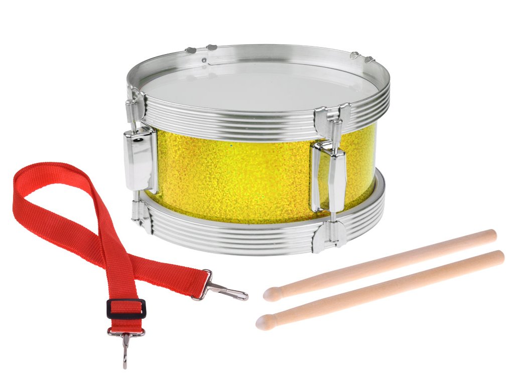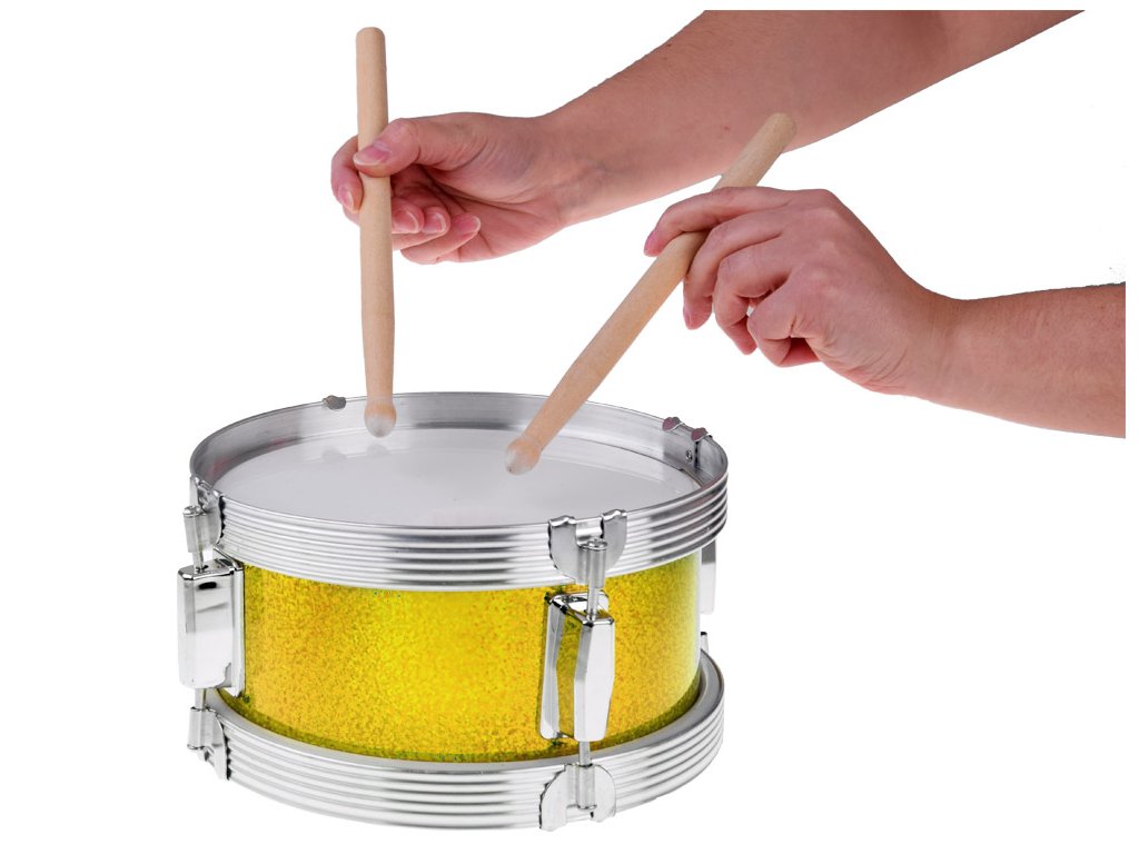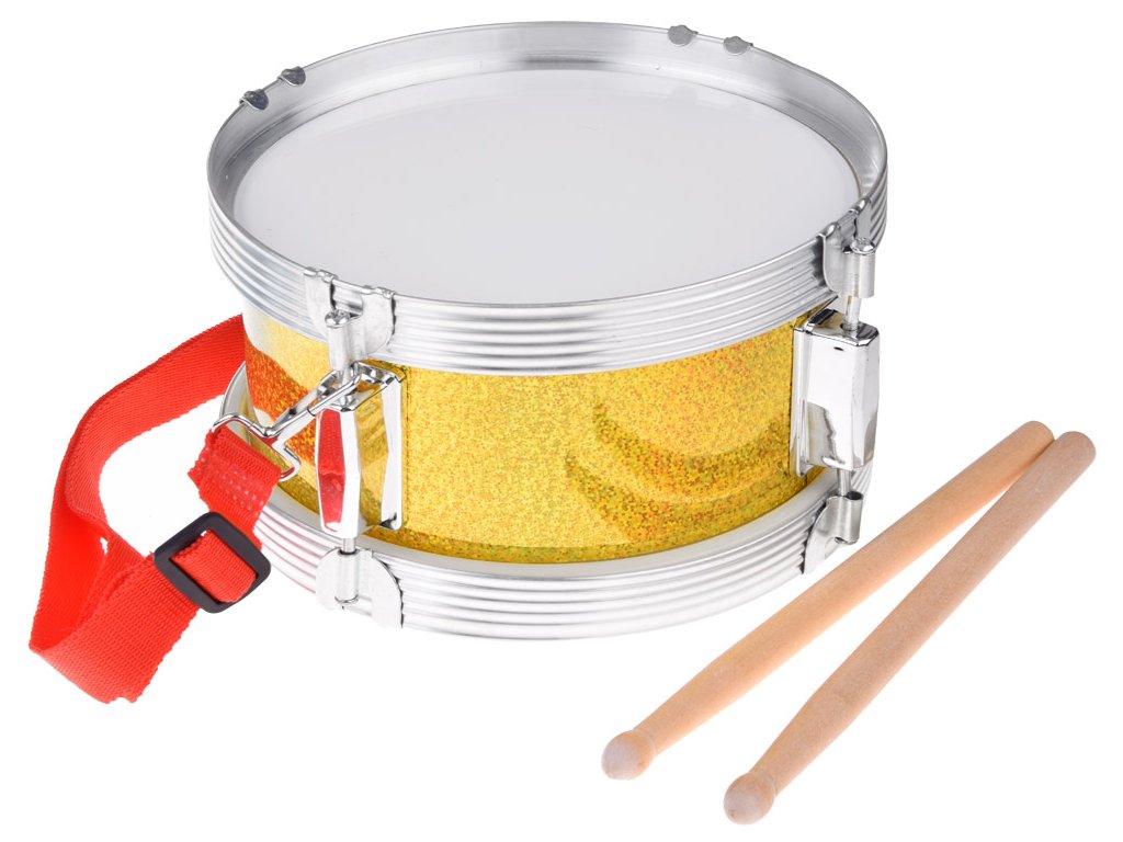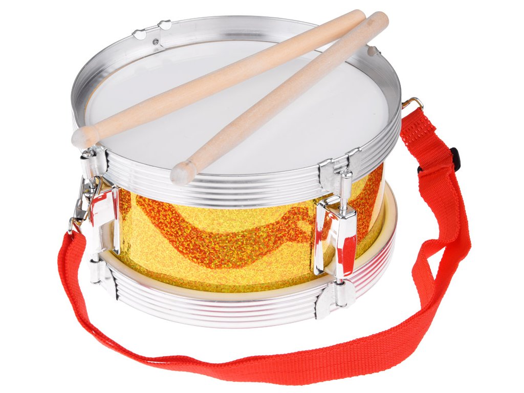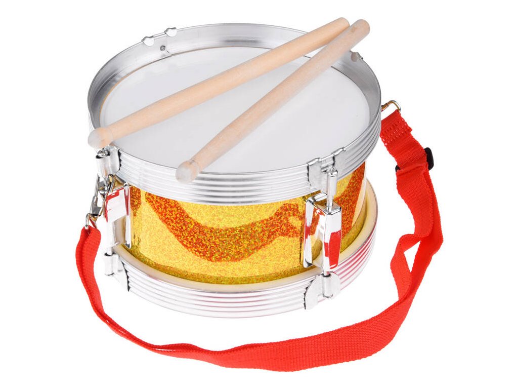 Dětský bubínek je skvělý pro každého malého hudebníka. Buben má kovovou obruč pro vyšší odolnost a membránu z umělé hmoty. Díky součásti dřevěných paliček v sadě může dítě vytvářet hudební sekvence a učit se cítit rytmus. Materiálový popruh zajišťuje pohodlné používání nástroje.