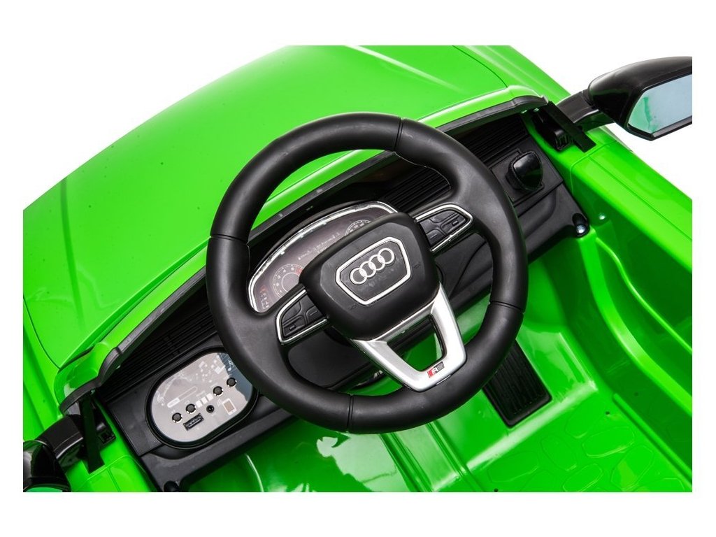 A licencelt Audi márka elektromos gyerekjátékautója minden bizonnyal lenyűgözi a minőségi járművek szerelmeseit. EVA habszivacs kerekekkel van felszerelve, amelyek csendesek és különféle tereptípusokat bírnak. A gyermek puha ökoBőrülésben ül.
