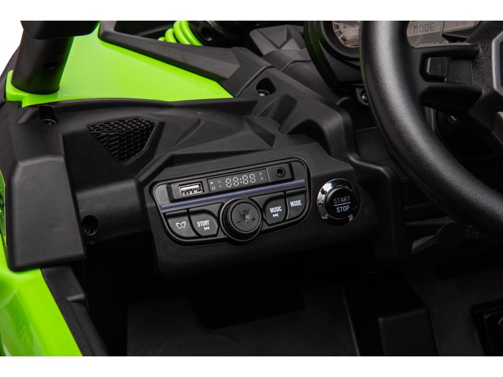 A Buggy 4x4 elektromos játékautó nem hiányozhat egyetlen gyerekgarázsból sem. A játékautó 24V-os 7Ah-s akkumulátorral működik. A kocsi maximális terhelhetősége 30 kg. Utazás közben a gyermeket minden bizonnyal lenyűgözi az MP3-as, USB-s zenepanel .