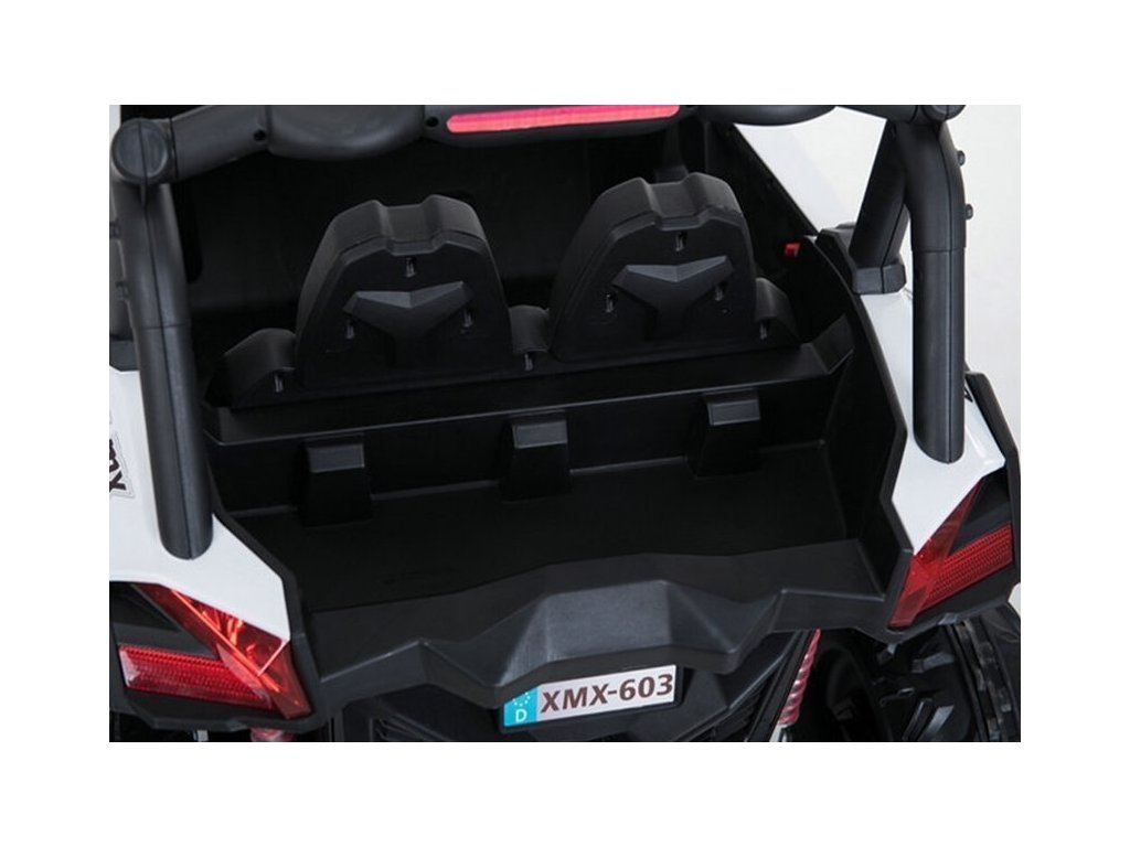 A négy nagy teljesítményű , 180 W összteljesítményű Buggy SuperStar elektromos autó egyetlen gyerekgarázsból sem hiányozhat. A játékautót két 12V 7Ah akkumulátor táplálja. A kocsi maximális terhelhetősége 50 kg. Indításkor hallani fogja a motor hangját , és menet közben a gyermeket minden bizonnyal lenyűgözi az MP4-et, SD-kártyát és előre lejátszott dallamokat tartalmazó zenepanel .