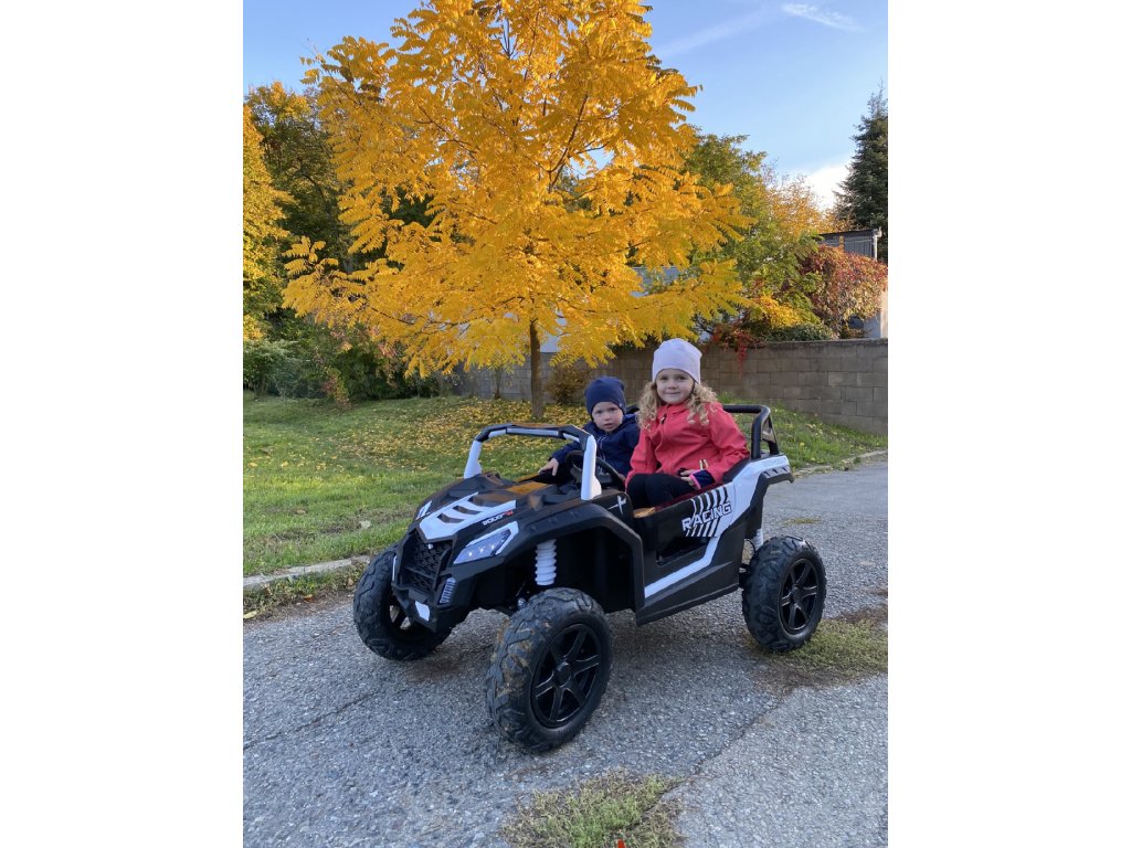 A Buggy Strong 24V elektromos gyerekautó masszív felfújható kerekeivel és akár 100 kg-os teherbírásával tűnik ki. A játék nagy teherbíró képességének és méretének köszönhetően két gyerek kényelmesen ülhet benne. Az ülés ökológiai bőrből készült.